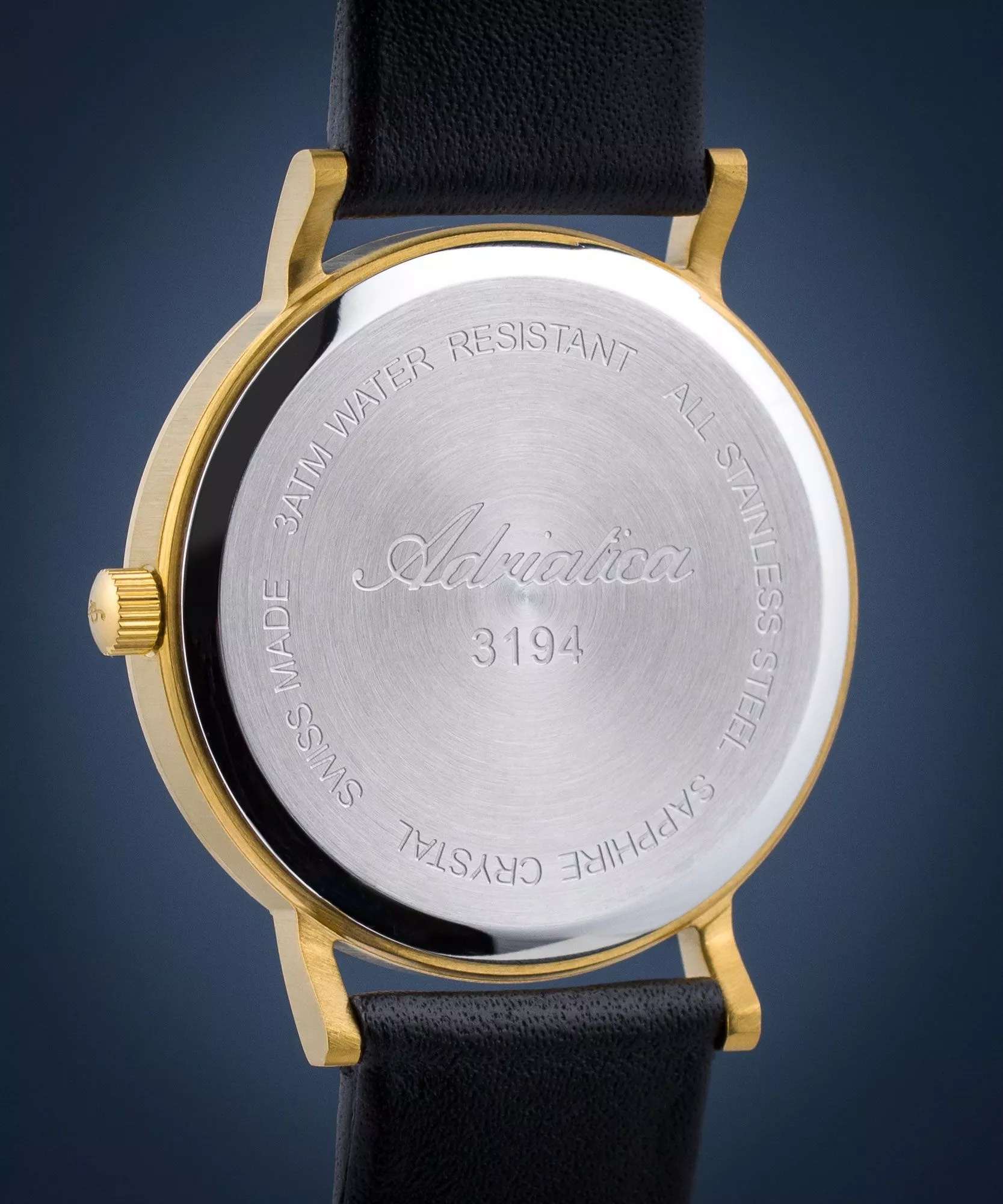 Изысканные женские часы Adriatica A3194.1264Q созданные в Швейцарии. Эти элегантные часы сочетают в себе точность и стиль, идеально подходя для современных женщин, ценящих качество и дизайн. Часы оснащены кварцевым механизмом, что гарантирует надежность и точность хода. Корпус диаметром 31 мм и толщиной 7 мм выполнен из нержавеющей стали с покрытием PVDPVDУльтратонкое покрытие наносится в технике вакуумного напыления, сочетает в себе нитрид титана особой прочности со слоем золота или оксида хрома. Несёт в себе декоративную или защитную функцию. золотистого цвета, обеспечивающим долговечность и устойчивость к внешним воздействиям. Сапфировое стеклоСапфировое стеклоПрочный и надёжный материал из кристалла сапфира синтетического происхождения, характеризующийся особой твёрдостью и устойчивостью к царапинам и повреждениям. защищает циферблат, предотвращая появление царапин и сохраняя прозрачность. Водозащита уровня WR 30 (3 АТМ) позволяет носить часы в условиях легкой влажности, например, под дождем. Кожаный ремешок на стандартной застёжке обеспечивает комфортное ношение и надежную фиксацию на запястье. Часы также оснащены функцией даты, добавляющей практичности в повседневное использование.