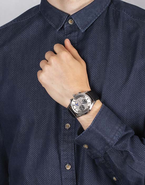 Корпус из нержавеющей стали — самый практичный вариант для часов на каждый день. Материал прочный, спокойно переносит воду, пот, перепады температуры и при этом долго сохраняет аккуратный внешний вид.