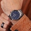 Мужские швейцарские часы-хронографХронографФункция позволяет измерять отрезки времени с особой точностью: часы, минуты, секунды. Верным признаком хронографа является наличие на циферблате 3 дополнительных окошек-счётчиков. с секундомеромСекундомерСекундоме́р — прибор, способный измерять интервалы времени с точностью до долей секунды. Adriatica Passion A8283.5155CH имеют кварцевый механизм с высокой точностью. Сапфировое стеклоСапфировое стеклоПрочный и надёжный материал из кристалла сапфира синтетического происхождения, характеризующийся особой твёрдостью и устойчивостью к царапинам и повреждениям. устойчивое к появлению царапин, обладающее высокой прозрачностью защищает текстурированный синий циферблат с метками в виде штрихов и арабской цифры 12. Месяц и день недели отображаются в отдельных окошках, а дата отображается центральной стрелкой, также часы имеют 3 дополнительных циферблата. Корпус часов изготовлен из нержавеющей стали. На часовую, минутную стрелки нанесено люминесцентное покрытиеЛюминесцентное покрытиеПозволяет считывать показания времени в темноте. Производители наносят на стрелки, часовые индексы, безель или поверхность циферблата светонакопительный состав, дающий холодное свечение., которое светится в темноте, создавая необычное изображение. Стальной браслет с раскладной застёжкойРаскладная застёжкаТакой тип застёжки используется только на браслетах из металла. Она никогда не раскрывается полностью, происходит разделение на 2 и более частей. Раскладывающая застёжка снизит вероятность потери часов к минимуму. обеспечивает комфортное ношение и надежную фиксацию на запястье. Надежный кварцевый механизм с калибром RONDA 5040.F гарантирует точность времени, а водозащита 50 метров, позволит плавать, что позволит защитить корпус от случайных брызг или капель дождя.