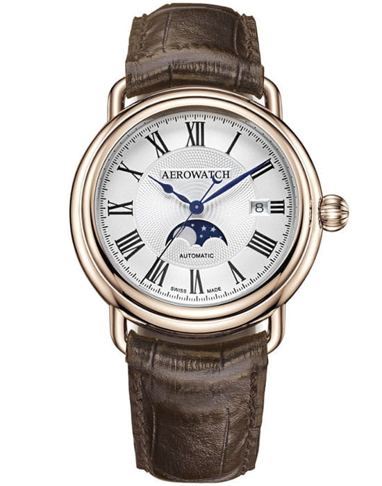 Мужские швейцарские механические часы с лунным календарем Aerowatch 77983 RO01, механический механизм (автоматический калибр) с высокой точностью. Сапфировое стекло устойчивое к появлению царапин, обладающее высокой прозрачностью. Класс водозащиты: 50 метров, позволит защитить корпус от случайных брызг или капель дождя. Корпус часов изготовлен из стали, цвета.