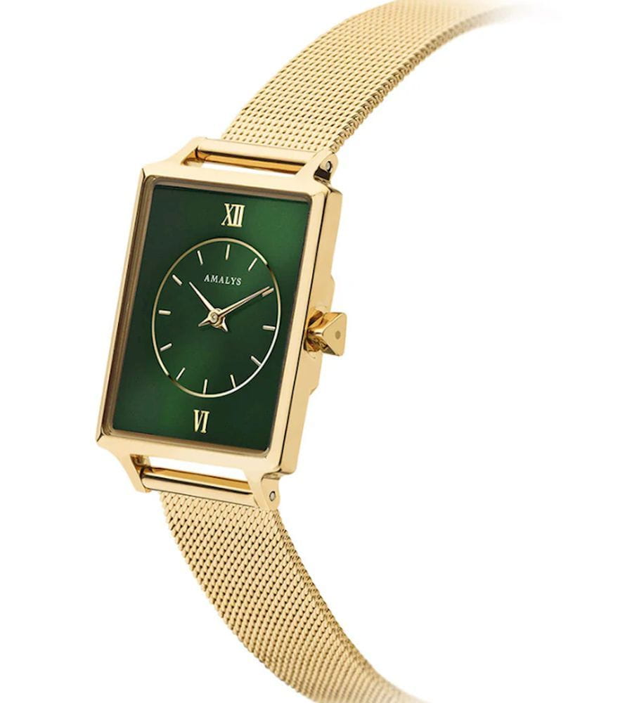 Amalys AMW-036 — женская модель с утончённой минималистичной эстетикой, где корпус с PVD-покрытиемPVDУльтратонкое покрытие наносится в технике вакуумного напыления, сочетает в себе нитрид титана особой прочности со слоем золота или оксида хрома. Несёт в себе декоративную или защитную функцию. размером 23 мм подчёркивает современный характер и чистоту линий. Механизм — точный кварцевый, обеспечивающий стабильный ход и надёжность в повседневном использовании. Поверхность циферблата оформлена в лаконичном стиле с тонкими метками и стрелками, создающими гармонию и визуальную лёгкость. Защитную функцию выполняет минеральное стеклоМинеральное стеклоМинеральное стекло представляет собой искусственно выращенный минерал кварца. Такое стекло отличается особой устойчивостью к повреждениям и царапинам. Уступает по некоторым качествам сапфировому стеклу., устойчивое к механическим воздействиям и сохраняющее читаемость при ежедневной носке. Браслет с PVD-покрытиемPVDУльтратонкое покрытие наносится в технике вакуумного напыления, сочетает в себе нитрид титана особой прочности со слоем золота или оксида хрома. Несёт в себе декоративную или защитную функцию. выполнен в виде «миланской сетки» шириной 14 мм, оснащён раскладным замкомРаскладной замокДанный вариант застежки используется только на часах с металлическим браслетом. Отличительная особенность такого крепления в том, что длина браслета становится универсальной и вы можете самостоятельно отрегулировать нужный вам размер – застежка просто двигается по браслету часов., его гибкая структура обеспечивает комфортное прилегание к запястью и визуальную утончённость. Единство корпуса и браслета создаёт целостный образ, а изысканная простота дизайна делает модель универсальной — она одинаково уместна и в деловой обстановке, и в повседневных сочетаниях.