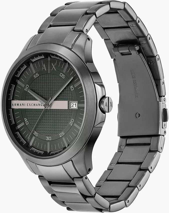 Armani Exchange Hampton AX2455 — это стильные и надежные часы, которые привнесут элегантность в ваш повседневный образ. Эти кварцевые часы выделяются своим круглым корпусом и безелемБезельВнешний ободок, закрепляющий стекло. В спортивных часах так называется поворотное кольцо с делениями на циферблате, выполняет роль таймера – замеряет отрезки времени на шкале. Неподвижный безель – элемент декора. Однонаправленно вращающийся безель на дайверских часах позволяет фиксировать моменты погружения и выныривания на поверхность., выполненными из высококачественной нержавеющей стали с серым IP-покрытиемIP-покрытиеМетод ионного напыления. Демонстрирует повышенную устойчивость к истиранию, окислению и химическим веществам. Под воздействием высокого давления и температуры около 1500°C молекулы металла надёжно соединяются с частицами корпуса часов., что обеспечивает долговечность и современный внешний вид. Серый текстурированный циферблат украшен метками в виде штрихов и минутной шкалой, что делает его не только стильным, но и функциональным, а окошко даты удобно расположено в положении 3 часа, что позволяет легко следить за текущей датой. Минеральное стеклоМинеральное стеклоМинеральное стекло представляет собой искусственно выращенный минерал кварца. Такое стекло отличается особой устойчивостью к повреждениям и царапинам. Уступает по некоторым качествам сапфировому стеклу. защищает циферблат от царапин и повреждений, обеспечивая долговечность. Часы оснащены заводной головкой с защитой, что добавляет надежности в повседневном использовании. Стальной браслет с серым IP-покрытиемIP-покрытиеМетод ионного напыления. Демонстрирует повышенную устойчивость к истиранию, окислению и химическим веществам. Под воздействием высокого давления и температуры около 1500°C молекулы металла надёжно соединяются с частицами корпуса часов. и раскладной застёжкойРаскладная застёжкаТакой тип застёжки используется только на браслетах из металла. Она никогда не раскрывается полностью, происходит разделение на 2 и более частей. Раскладывающая застёжка снизит вероятность потери часов к минимуму. обеспечивает комфорт и надежную фиксацию на запястье. С водозащитой 50WR, эти часы подходят для повседневного использования, обеспечивая защиту от случайных брызг и дождя.