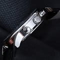 Мужские швейцарские часы-хронографХронографФункция позволяет измерять отрезки времени с особой точностью: часы, минуты, секунды. Верным признаком хронографа является наличие на циферблате 3 дополнительных окошек-счётчиков. с секундомеромСекундомерСекундоме́р — прибор, способный измерять интервалы времени с точностью до долей секунды. Atlantic Seabase 64452.41.68, кварцевый механизм с высокой точностью. Cапфировое стеклоСапфировое стеклоПрочный и надёжный материал из кристалла сапфира синтетического происхождения, характеризующийся особой твёрдостью и устойчивостью к царапинам и повреждениям. устойчивое к появлению царапин и обладающее высокой прозрачностью. Корпус часов изготовлен из нержавеющей стали. На циферблате расположены римские цифры, два дополнительных индикатора, окошко даты в положении 3 часов. Класс водозащиты: 50 метров, позволит защитить корпус от случайных брызг или капель дождя. Кожаный ремешок на стандартной застежке.