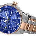 Циферблат защищён сапфировым стекломСапфировое стеклоПрочный и надёжный материал из кристалла сапфира синтетического происхождения, характеризующийся особой твёрдостью и устойчивостью к царапинам и повреждениям. с антибликовым покрытием, гарантирующим чёткий обзор без отражений. Сердцем модели является швейцарский кварцевый механизм Ronda 515.24D, который обеспечивает работу GMT, дату и высшую точность в диапазоне −10/+20 с/мес. .