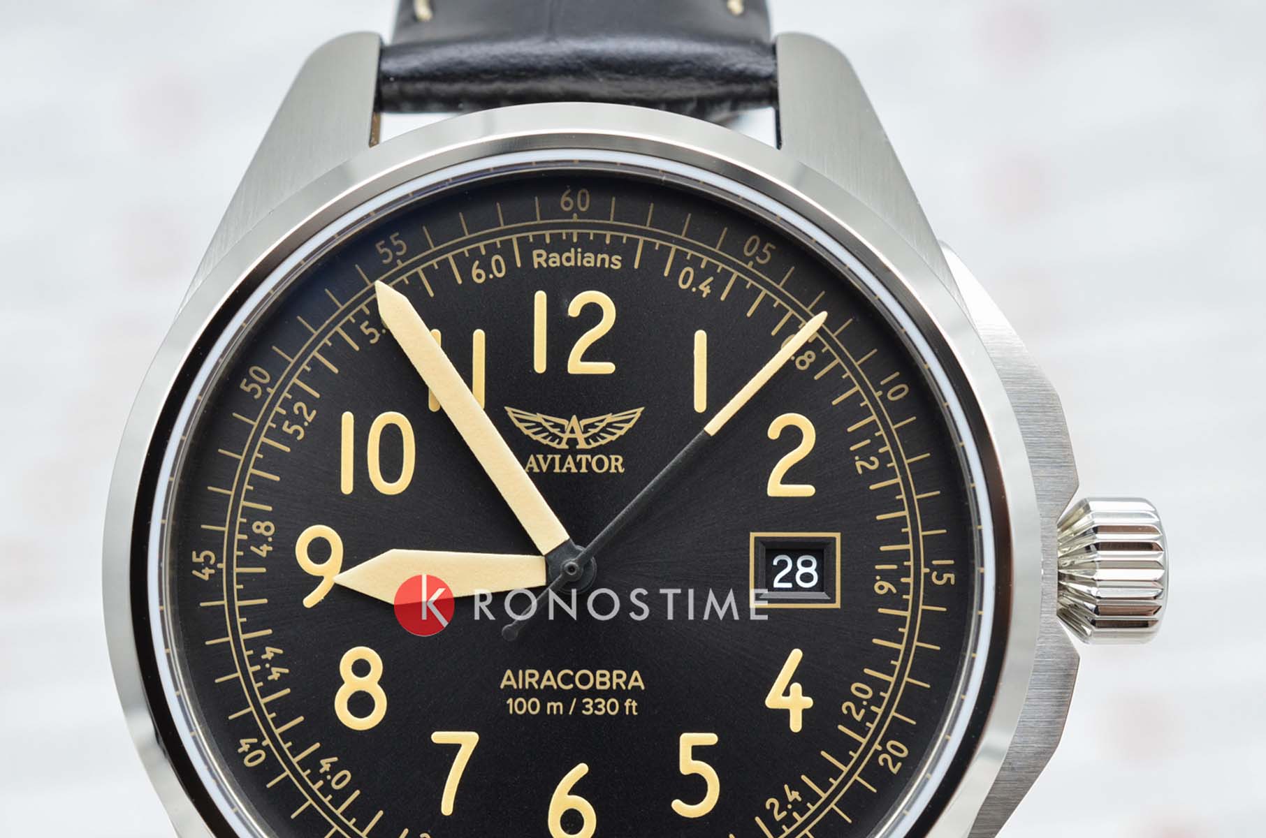 Aviator V.1.38.0.323.4 “Airacobra 43 Type A” — надёжные швейцарские пилотские часы с насыщенным функционалом и строгим авиационным дизайном. Корпус диаметром 42,8 мм выполнен из нержавеющей стали.