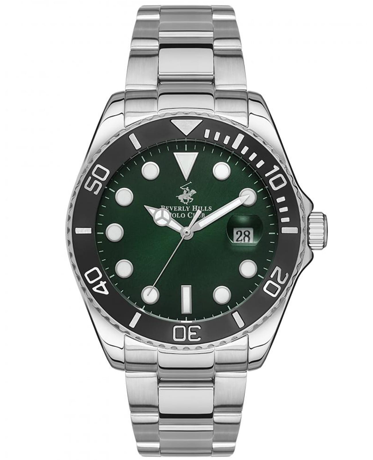 Американские мужские часы с минеральным стеклом Beverly Hills Polo Club BP3328X.370, кварцевый механизм с высокой точностью. Класс водозащиты: 50 метров, позволит защитить корпус от случайных брызг или капель дождя. Корпус и браслет часов изготовлены из нержавеющей стали серебристого цвета. Циферблат с датой на третьем часу. Браслет с раскладывающейся застёжкойРаскладная застёжкаТакой тип застёжки используется только на браслетах из металла. Она никогда не раскрывается полностью, происходит разделение на 2 и более частей. Раскладывающая застёжка снизит вероятность потери часов к минимуму..