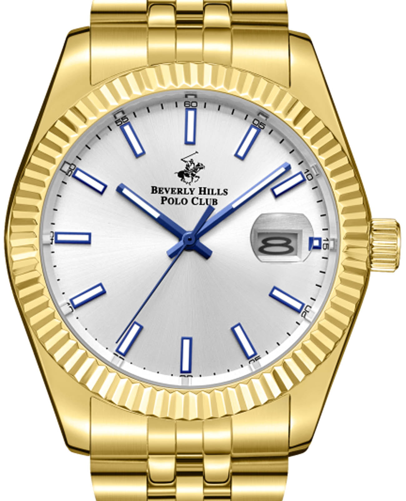 BEVERLY HILLS POLO CLUB BP3018X.130 — стильные мужские часы, сочетающие спортивную динамику и функциональность. Крупный корпус выполнен из нержавеющей стали с IP-покрытиемIP-покрытиеМетод ионного напыления. Демонстрирует повышенную устойчивость к истиранию, окислению и химическим веществам. Под воздействием высокого давления и температуры около 1500°C молекулы металла надёжно соединяются с частицами корпуса часов. золотистого цвета, диаметром 41 мм, гармонично дополнен стальным браслетом на застёжке-бабочке с кнопкамиЗастёжка "бабочка"Такой вид застёжки дополняется предохранителями, помогающими избежать случайного раскрытия браслета. Обладают изящным исполнением. . Рифленый неподвижный безельБезельВнешний ободок, закрепляющий стекло. В спортивных часах так называется поворотное кольцо с делениями на циферблате, выполняет роль таймера – замеряет отрезки времени на шкале. Неподвижный безель – элемент декора. Однонаправленно вращающийся безель на дайверских часах позволяет фиксировать моменты погружения и выныривания на поверхность.. Циферблат с акцентными метками и стрелками с люминесцентным покрытиемЛюминесцентное покрытиеПозволяет считывать показания времени в темноте. Производители наносят на стрелки, часовые индексы, безель или поверхность циферблата светонакопительный состав, дающий холодное свечение. делает модель более практичной. Минеральное стеклоМинеральное стеклоМинеральное стекло представляет собой искусственно выращенный минерал кварца. Такое стекло отличается особой устойчивостью к повреждениям и царапинам. Уступает по некоторым качествам сапфировому стеклу. с сапфировым покрытием защищает циферблат от царапин, а кварцевый механизм обеспечивает высокую точность. Окошко даты находится в положении 3 часа. Благодаря своей универсальной эстетике эти часы уместны и в деловой среде, и в повседневном образе. Идеальный выбор для тех, кто ценит элегантный дизайн и качество.