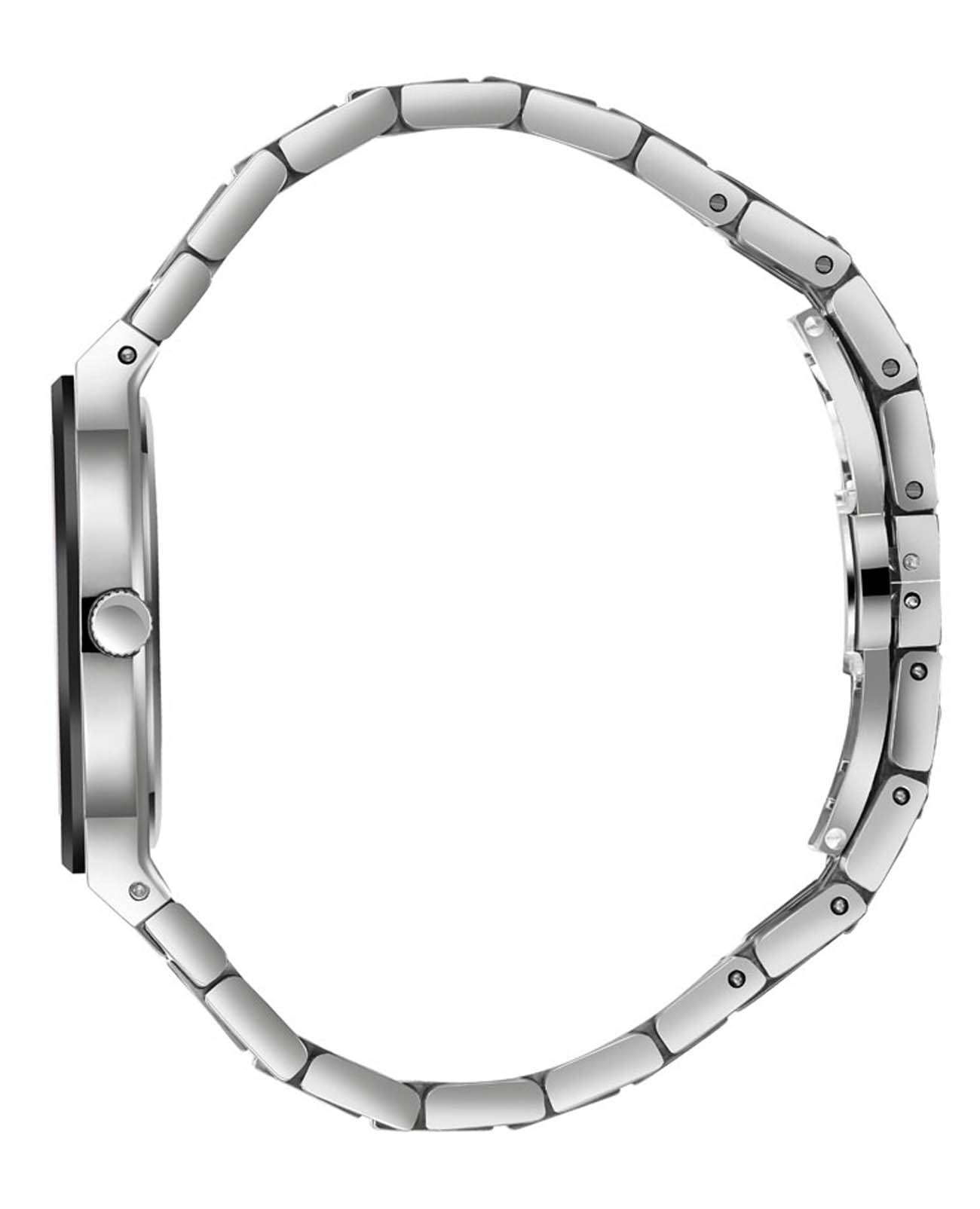 Корпус изготовлен из прочной стали, что обеспечивает устойчивость к царапинам и долговечность использования. Циферблат защищён минеральным стекломМинеральное стеклоМинеральное стекло представляет собой искусственно выращенный минерал кварца. Такое стекло отличается особой устойчивостью к повреждениям и царапинам. Уступает по некоторым качествам сапфировому стеклу., устойчивым к мелким механическим повреждениям и сохраняющим высокую прозрачность. БезельБезельВнешний ободок, закрепляющий стекло. В спортивных часах так называется поворотное кольцо с делениями на циферблате, выполняет роль таймера – замеряет отрезки времени на шкале. Неподвижный безель – элемент декора. Однонаправленно вращающийся безель на дайверских часах позволяет фиксировать моменты погружения и выныривания на поверхность. из керамики.