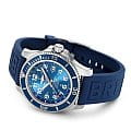Дайверские часы Superocean II 44, оснащенные прочным корпусом диаметром 44 мм из матированной стали, славятся своей исключительной водонепроницаемостью на глубине до 1000 м (3300 футов), а также сверхчитаемым черным или синим циферблатом с крупными цифрами и стрелками, усиленными люминесцентным покрытиемЛюминесцентное покрытиеПозволяет считывать показания времени в темноте. Производители наносят на стрелки, часовые индексы, безель или поверхность циферблата светонакопительный состав, дающий холодное свечение.. Предохранительный клапан служит для выравнивания разницы в давлении внутри и снаружи корпуса. Калибр с автоподзаводом, официально сертифицированный для хронометров, обеспечивает исключительную производительность и точность.