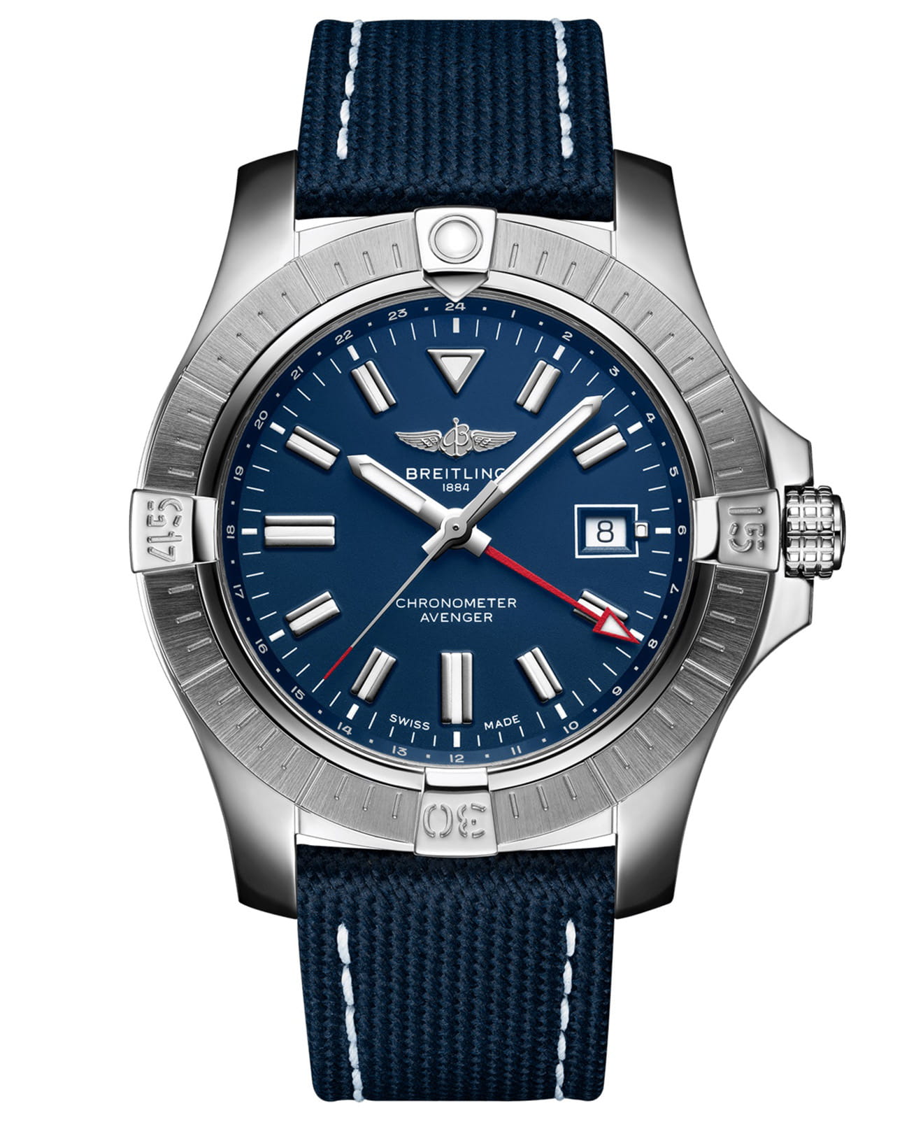 Мужские швейцарские часы Breitling Avenger Automatic GMT 45 A32395101C1X1, механический механизм (автоматический калибр) Breitling 32 с высокой точностью. Выпуклое сапфировое стекло устойчивое к появлению царапин, обладающее высокой прозрачностью и антибликовым покрытием с обеих сторон.