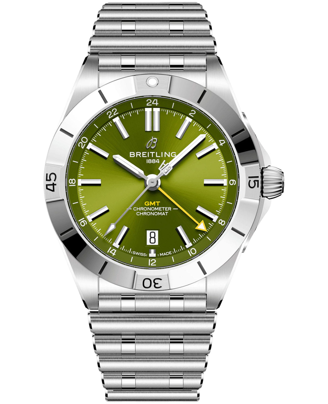 Мужские швейцарские часы Breitling Chronomat Automatic GMT 40 Giannis Antetokounmpo Limited Edition A32398A11L1A1 механический механизм (автоматический калибр) с высокой точностью. Выпущенные ограниченным тиражом совместно с Яннисом Адетокунмпо, тиражом всего 2000 экземпляров, сочетает в себе наше неподвластное времени мастерство и непринужденный стиль профессионального баскетболиста. Центральной стрелки с инициалами спортсмена «GA» и на изображение баскетбольного мяча на счетчике секунд хронографаХронографФункция позволяет измерять отрезки времени с особой точностью: часы, минуты, секунды. Верным признаком хронографа является наличие на циферблате 3 дополнительных окошек-счётчиков. — это отсылка к его профессии и увлечению. На задней крышке выгравирована информация об ограничении: «One of 1750» для 40-миллиметровых автоматических часов GMT из нержавеющей стали. Сапфировое стеклоСапфировое стеклоПрочный и надёжный материал из кристалла сапфира синтетического происхождения, характеризующийся особой твёрдостью и устойчивостью к царапинам и повреждениям. с антибликовым покрытиемАнтибликовое покрытиеСлой оксида металла в 0,13-0,3 микрон, благодаря которому стекло часов не бликует и не отражает свет. Антибликовое покрытие уменьшает отражение света в 10 раз, обеспечивая отличную читаемость показателей циферблата. устойчивое к появлению царапин, обладающее высокой прозрачностью. Класс водозащиты: 200 метров, позволит плавать, нырять и заниматься другими водными видами спорта. Корпус часов изготовлен из нержавеющей стали, диаметром 40 мм. Стальной браслет на застёжке-бабочке с кнопкамиЗастёжка "бабочка"Такой вид застёжки дополняется предохранителями, помогающими избежать случайного раскрытия браслета. Обладают изящным исполнением. обеспечивает комфортное ношение. Часы имеют сертификат COSCСертификат COSCОфициальный сертификат, подтверждающий то, что часы ходят с особо высокой точностью. Для получения документа часы подвергаются тестовым испытаниям, разработанным швейцарским институтом тестирования хронометров COSC. Допустимая норма для механических часов -4/+6 секунд в день, для кварцевых моделей +/- 0,07 секунд в день., запас хода примерно 42 часа. Стрелки и метки с люминесцентным покрытиемЛюминесцентное покрытиеПозволяет считывать показания времени в темноте. Производители наносят на стрелки, часовые индексы, безель или поверхность циферблата светонакопительный состав, дающий холодное свечение.. Окошко даты находится в положении 6 часов. Известные как “часы на все случаи жизни”, часы Chronomat сейчас актуальны как никогда благодаря практичным размерам GMT 40 и сдержанному стилю.