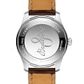 Класс водозащиты: 100 метров, позволит плавать, нырять и заниматься другими водными видами спорта. Выпуклое сапфировое стекло с антибликовым покрытием с обoеих сторон. Корпус часов серебристого цвета, изготовлен из нержавеющей стали. Ремешок из телячьей кожи коричневого цвета с пряжкой из нержавеющей стали.