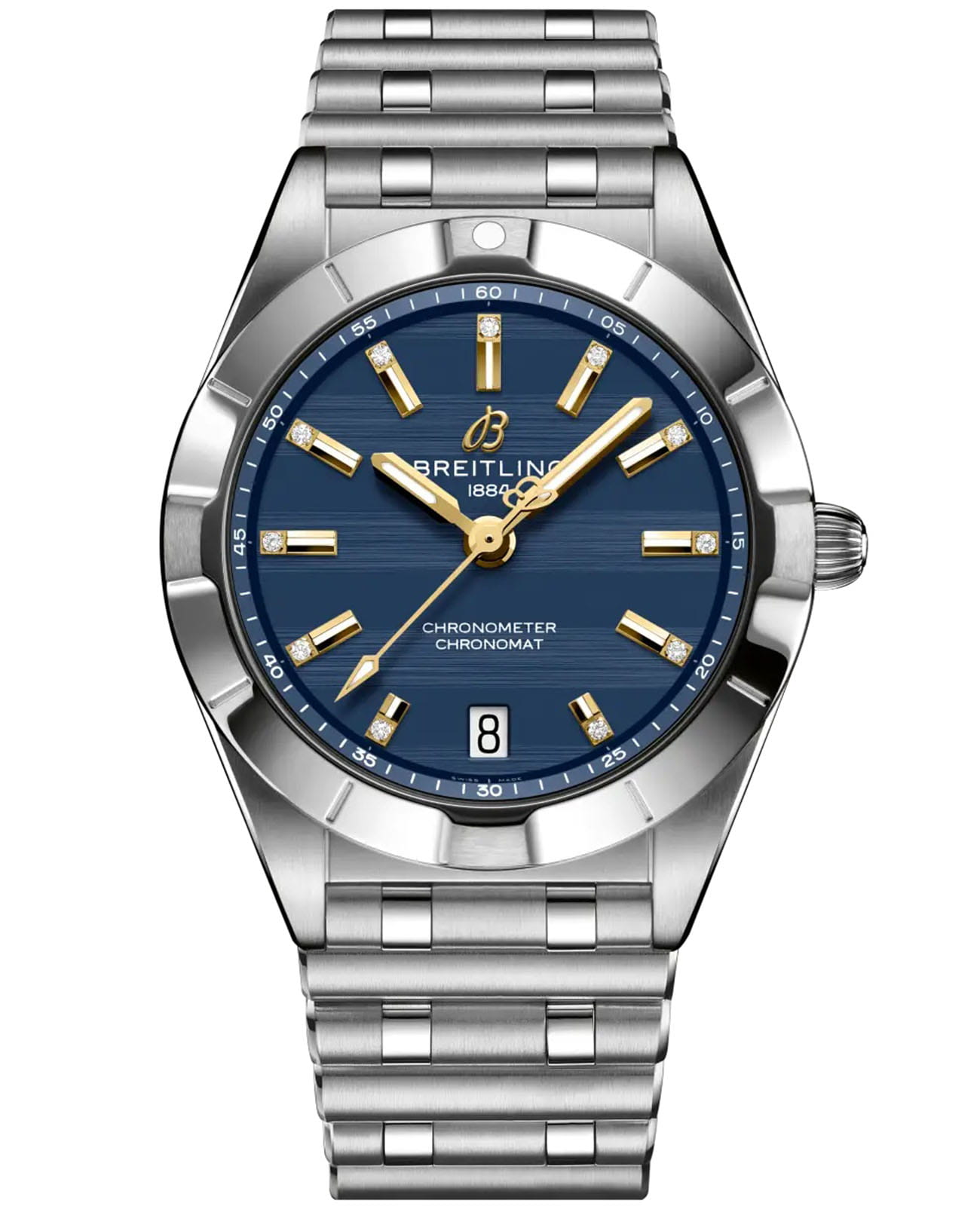 Женские кварцевые часы Breitling Chronomat A773109A1C1A1 — это изысканный аксессуар, сочетающий в себе классический дизайн и современные технологии. Модель выполнена из нержавеющей стали с диаметром корпуса 32 мм и толщиной 8,54 мм, что делает её утончённой и лаконичной. Циферблат синего цвета дополнен 11 бриллиантами круглой огранки, придающими модели роскошный внешний вид. Защиту механизма обеспечивает сапфировое стеклоСапфировое стеклоПрочный и надёжный материал из кристалла сапфира синтетического происхождения, характеризующийся особой твёрдостью и устойчивостью к царапинам и повреждениям. с антибликовым покрытиемАнтибликовое покрытиеСлой оксида металла в 0,13-0,3 микрон, благодаря которому стекло часов не бликует и не отражает свет. Антибликовое покрытие уменьшает отражение света в 10 раз, обеспечивая отличную читаемость показателей циферблата., устойчивым к повреждениям. Браслет из нержавеющей стали оснащён застёжкой «бабочка» с кнопкамиЗастёжка "бабочка"Такой вид застёжки дополняется предохранителями, помогающими избежать случайного раскрытия браслета. Обладают изящным исполнением. , обеспечивающей комфорт и надёжную фиксацию на запястье. Часы оснащены кварцевым механизмом Breitling 77, обеспечивающим точную работу и минимальное обслуживание. Водонепроницаемость позволяет использовать модель при плавании и других водных активностях без глубокого погружения. На задней крышке выгравирован логотип спортивной команды, которой посвящена модель, и надпись «Один из 75». Это лимитированная серия, выпущенная всего 75 экземпляров, что подчёркивает её уникальность. Гарантия 2 года подтверждает качество и долговечность изделия. Эти часы станут универсальным аксессуаром для тех, кто ценит сочетание стиля, функциональности и швейцарского мастерства — идеальный выбор для повседневной носки и торжественных случаев.