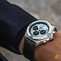 Корпус, диаметр которого составляет 42 мм, может быть выполнен из разных материалов. Характерной особенностью модели является знаменитый безель с четырьмя райдерами. Данная модель обладает корпусом из нержавеющей стали с платиновой пластиной безеля, которая идеально сочетается со светло-голубым циферблатом.