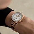 . Браслет на застёжке-бабочке с кнопкамиЗастёжка "бабочка"Такой вид застёжки дополняется предохранителями, помогающими избежать случайного раскрытия браслета. Обладают изящным исполнением. . Стрелки с люминесцентным покрытиемЛюминесцентное покрытиеПозволяет считывать показания времени в темноте. Производители наносят на стрелки, часовые индексы, безель или поверхность циферблата светонакопительный состав, дающий холодное свечение.. Циферблат украшен бриллантами. Часы оснащены логарифмической линейкой.