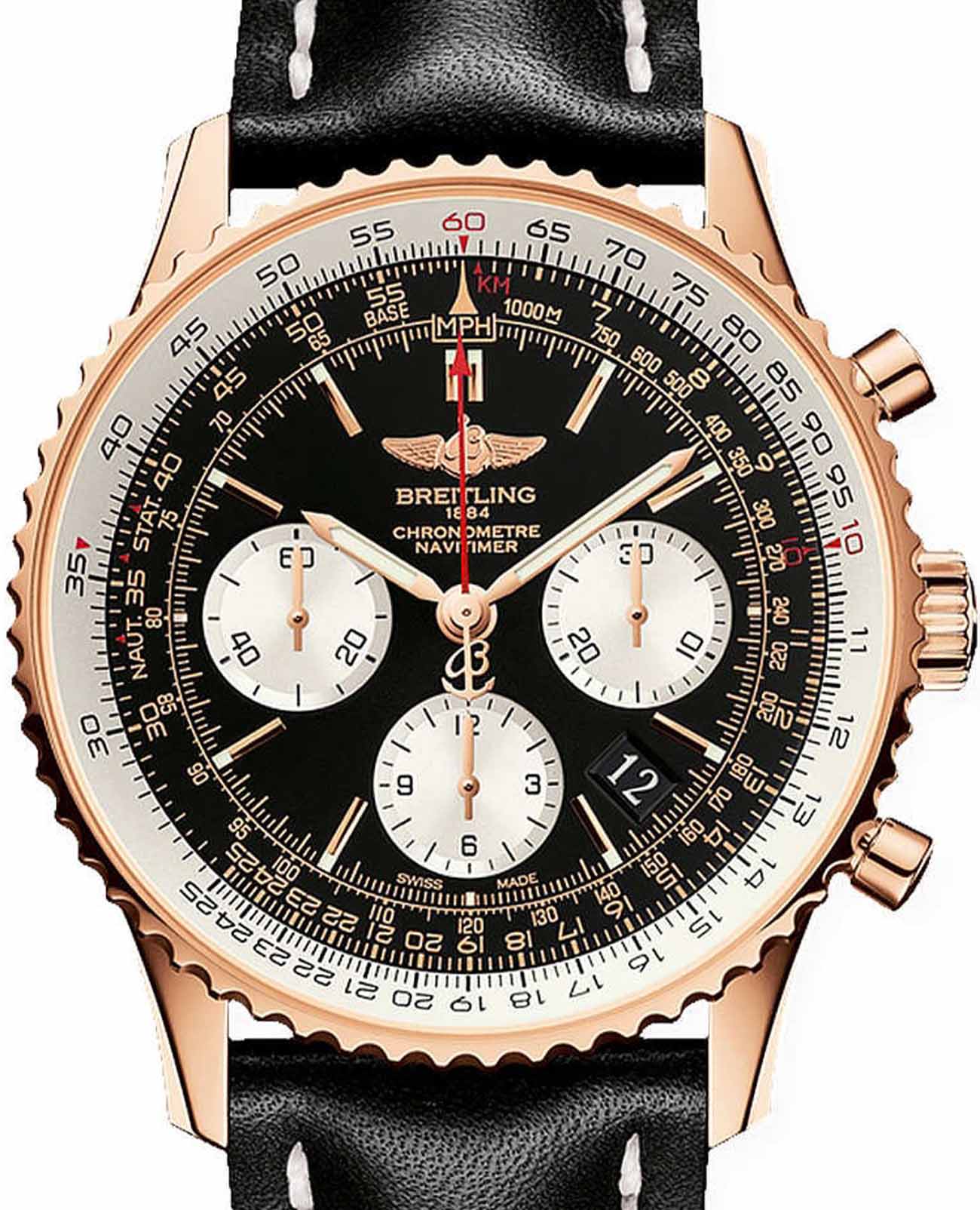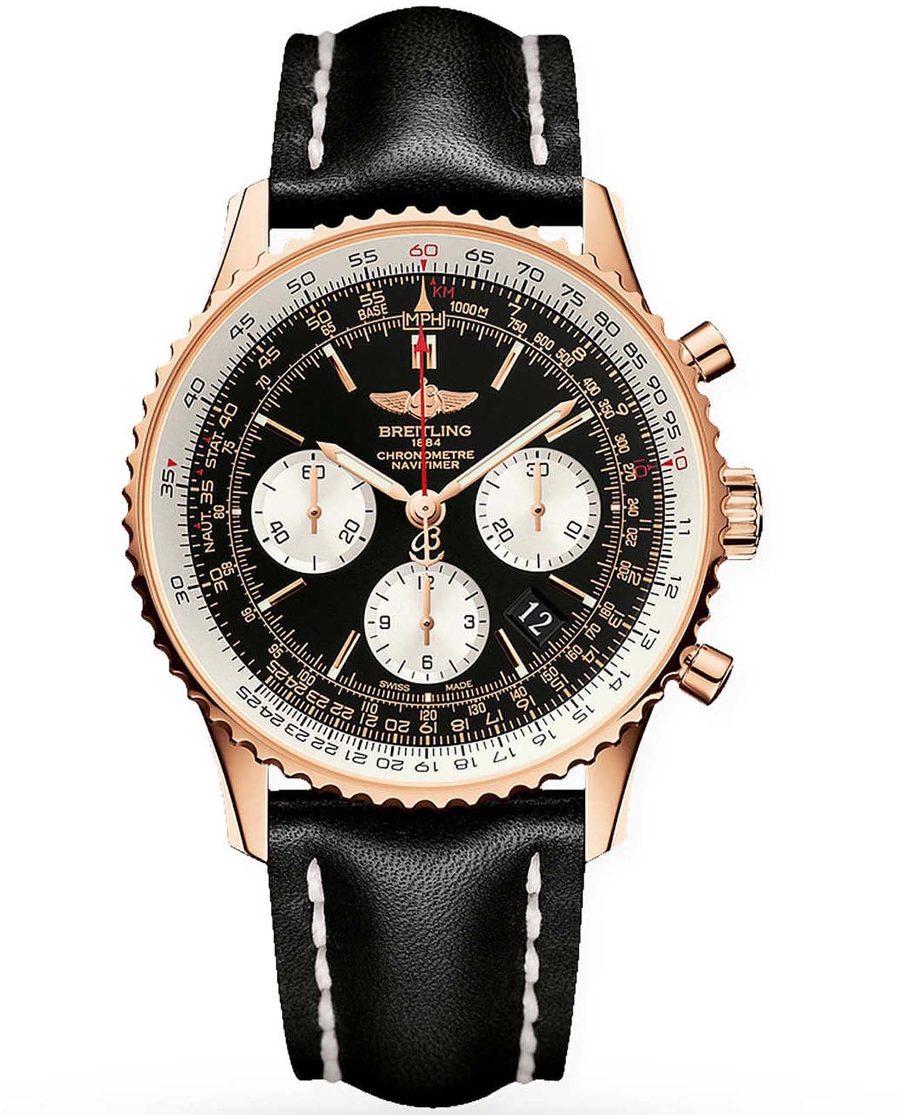 Мужские швейцарские часы-хронографХронографФункция позволяет измерять отрезки времени с особой точностью: часы, минуты, секунды. Верным признаком хронографа является наличие на циферблате 3 дополнительных окошек-счётчиков. с секундомеромСекундомерСекундоме́р — прибор, способный измерять интервалы времени с точностью до долей секунды. Breitling Navitimer 01 Chronograph 43 RB012012-BA49-743P, механический механизм (автоматический калибр) с высокой точностью. Сапфировое стеклоСапфировое стеклоПрочный и надёжный материал из кристалла сапфира синтетического происхождения, характеризующийся особой твёрдостью и устойчивостью к царапинам и повреждениям. с антибликовым покрытием устойчивое к появлению царапин, обладающее высокой прозрачностью. Класс водозащиты: 30 метров, позволит защитить корпус от случайных брызг или капель дождя. Корпус часов изготовлен из стали с 18-каратным золотом18-каратное золотоОбозначение по каратной системе пробирования, оно показывает, сколько драгоценного металла содержится в изделии. 18 карат - в составе 75% чистого золота, соответствует 750 пробе.