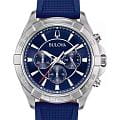 Мужские кварцевые часы-хронографХронографФункция позволяет измерять отрезки времени с особой точностью: часы, минуты, секунды. Верным признаком хронографа является наличие на циферблате 3 дополнительных окошек-счётчиков. Bulova Classic 96K103 – отражающий идеальное сочетание современного дизайна, надёжности и функциональности. Элегантный облик станет превосходным завершением образа, наделив его индивидуальным характером. Корпус из нержавеющей стали диаметром 42 мм идеально сбалансирован и элегантен. Минеральное стеклоМинеральное стеклоМинеральное стекло представляет собой искусственно выращенный минерал кварца. Такое стекло отличается особой устойчивостью к повреждениям и царапинам. Уступает по некоторым качествам сапфировому стеклу. защищает циферблат от царапин и устойчивое к мелким механическим повреждениям.Силиконовый ремешок синего цвета на стандартной застежке обеспечивает комфортное ношение. Стрелки и метки с люминесцентным покрытиемЛюминесцентное покрытиеПозволяет считывать показания времени в темноте. Производители наносят на стрелки, часовые индексы, безель или поверхность циферблата светонакопительный состав, дающий холодное свечение. позволяющие легко определять время даже в темноте. Водозащита 100 метров, позволит плавать, нырять и заниматься другими водными видами спорта. Эта модель – отличный выбор для тех, кто ищет сочетание стиля, качества и функциональности. Часы станут не только полезным аксессуаром, но и выразительным элементом вашего имиджа.