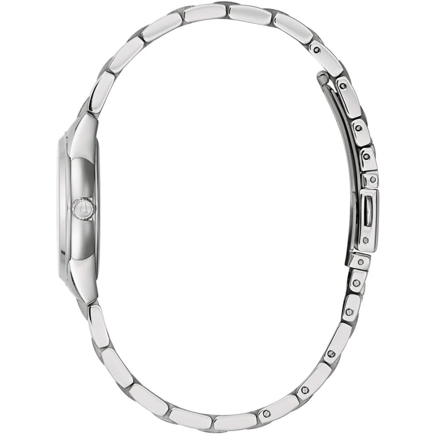 Женские кварцевые часы Bulova Sutton 96P250 – отражающий идеальное сочетание современного дизайна, надёжности и функциональности. Элегантный облик станет превосходным завершением образа, наделив его индивидуальным характером. Корпус из нержавеющей стали серебристого цвета, диаметром 28 мм идеально сбалансирован и элегантен. Сапфировое стеклоСапфировое стеклоПрочный и надёжный материал из кристалла сапфира синтетического происхождения, характеризующийся особой твёрдостью и устойчивостью к царапинам и повреждениям. защищает циферблат от царапин и устойчивое к мелким механическим повреждениям. Циферблат украшен бриллиантами. Стальной браслет на раскладной застёжкеРаскладная застёжкаТакой тип застёжки используется только на браслетах из металла. Она никогда не раскрывается полностью, происходит разделение на 2 и более частей. Раскладывающая застёжка снизит вероятность потери часов к минимуму. обеспечивает комфортное ношение. Водозащита 30 метров позволит защитить корпус от случайных брызг или капель дождя. Эта модель – отличный выбор для тех, кто ищет сочетание стиля, качества и функциональности. Часы станут не только полезным аксессуаром, но и выразительным элементом вашего имиджа.
