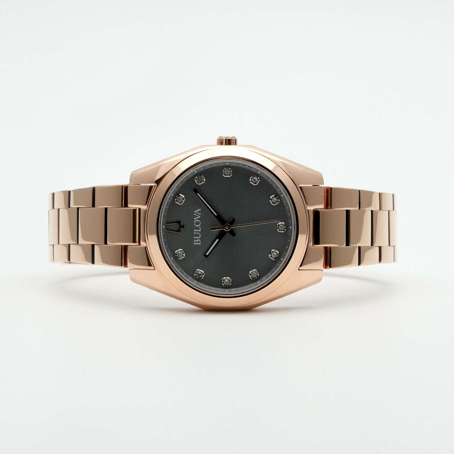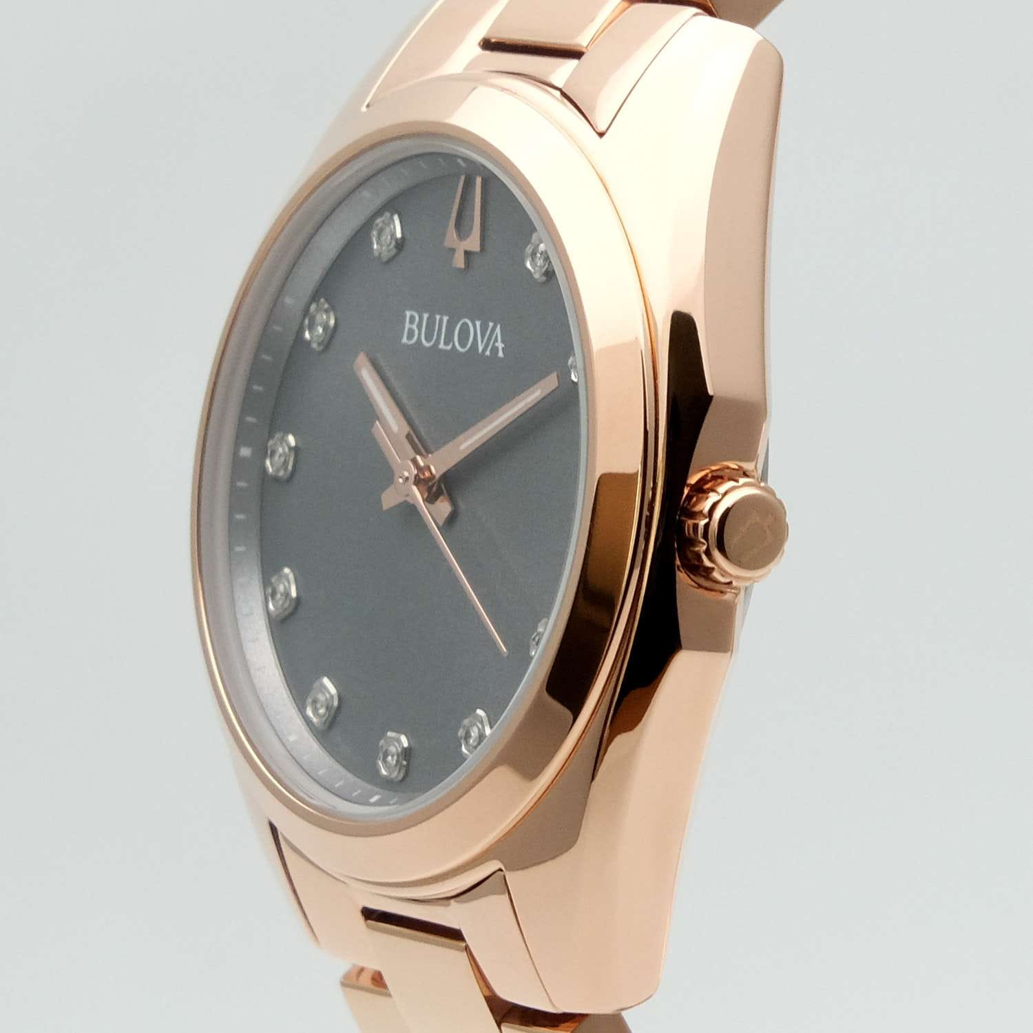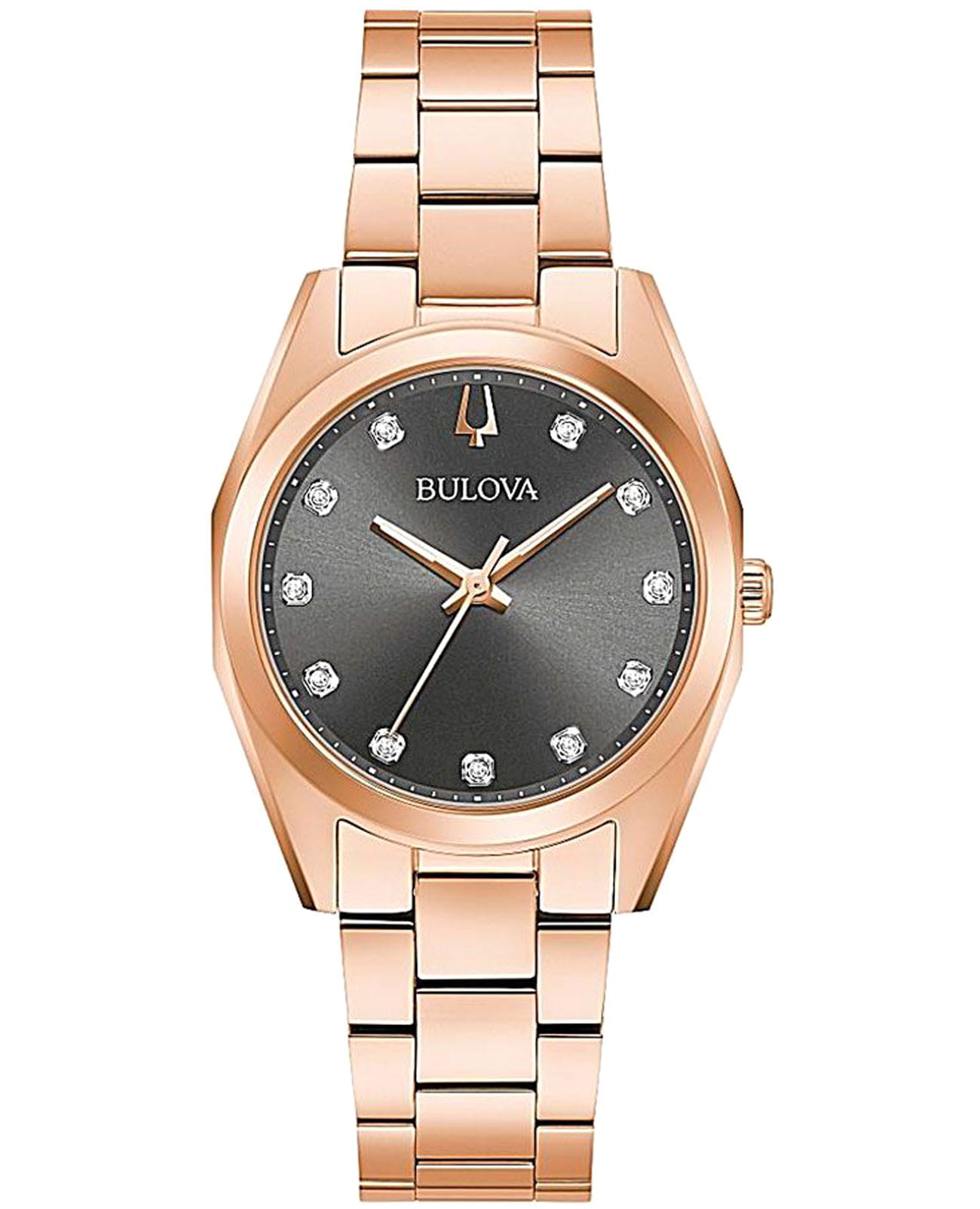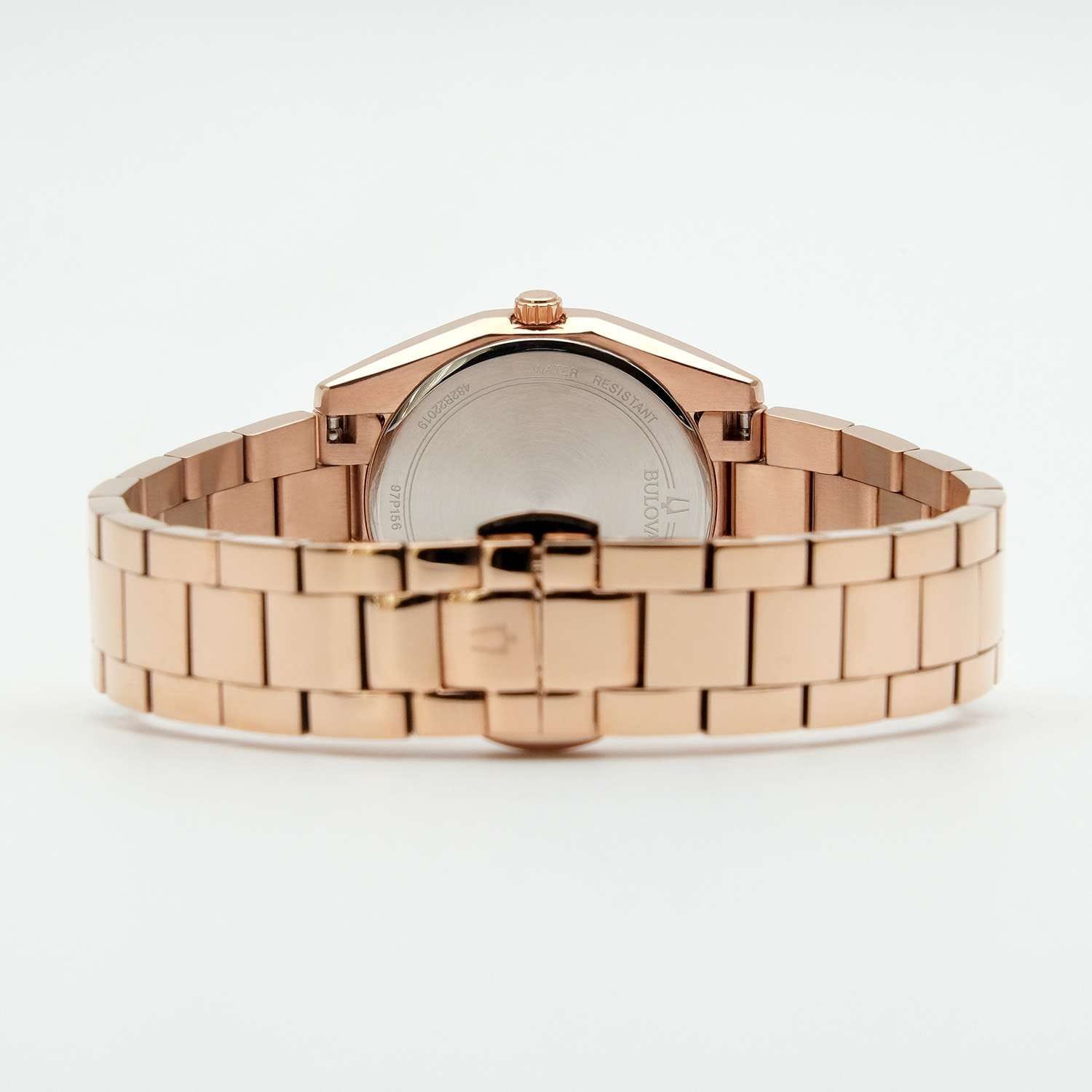 Женские кварцевые часы Bulova Surveyor 97P156 – отражающий идеальное сочетание современного дизайна, надёжности и функциональности. Элегантный облик станет превосходным завершением образа, наделив его индивидуальным характером. Корпус из нержавеющей стали с IP-покрытиемIP-покрытиеМетод ионного напыления. Демонстрирует повышенную устойчивость к истиранию, окислению и химическим веществам. Под воздействием высокого давления и температуры около 1500°C молекулы металла надёжно соединяются с частицами корпуса часов. цвета розового золота, диаметром 31 мм идеально сбалансирован и элегантен. Минеральное стеклоМинеральное стеклоМинеральное стекло представляет собой искусственно выращенный минерал кварца. Такое стекло отличается особой устойчивостью к повреждениям и царапинам. Уступает по некоторым качествам сапфировому стеклу. защищает циферблат от царапин и устойчивое к мелким механическим повреждениям. Циферблат украшен бриллиантами. Стальной браслет с IP-покрытиемIP-покрытиеМетод ионного напыления. Демонстрирует повышенную устойчивость к истиранию, окислению и химическим веществам. Под воздействием высокого давления и температуры около 1500°C молекулы металла надёжно соединяются с частицами корпуса часов. на застёжке-бабочке с кнопкамиЗастёжка "бабочка"Такой вид застёжки дополняется предохранителями, помогающими избежать случайного раскрытия браслета. Обладают изящным исполнением. обеспечивает комфортное ношение. Стрелки с люминесцентным покрытиемЛюминесцентное покрытиеПозволяет считывать показания времени в темноте. Производители наносят на стрелки, часовые индексы, безель или поверхность циферблата светонакопительный состав, дающий холодное свечение.. Водозащита 30 метров позволит защитить корпус от случайных брызг или капель дождя. Эта модель – отличный выбор для тех, кто ищет сочетание стиля, качества и функциональности. Часы станут не только полезным аксессуаром, но и выразительным элементом вашего имиджа.