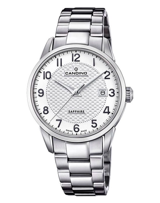 Швейцарские мужские наручные часы Candino Couple C4711/A, кварцевый механизм с высокой точностью. Сапфировое стеклоСапфировое стеклоПрочный и надёжный материал из кристалла сапфира синтетического происхождения, характеризующийся особой твёрдостью и устойчивостью к царапинам и повреждениям. устойчивое к появлению царапин, обладающее высокой прозрачностью. Класс водозащиты: 100 метров, позволит плавать, нырять и заниматься другими водными видами спорта. Раскладная застёжкаРаскладная застёжкаТакой тип застёжки используется только на браслетах из металла. Она никогда не раскрывается полностью, происходит разделение на 2 и более частей. Раскладывающая застёжка снизит вероятность потери часов к минимуму. с фиксатором. Корпус часов изготовлен из стали.