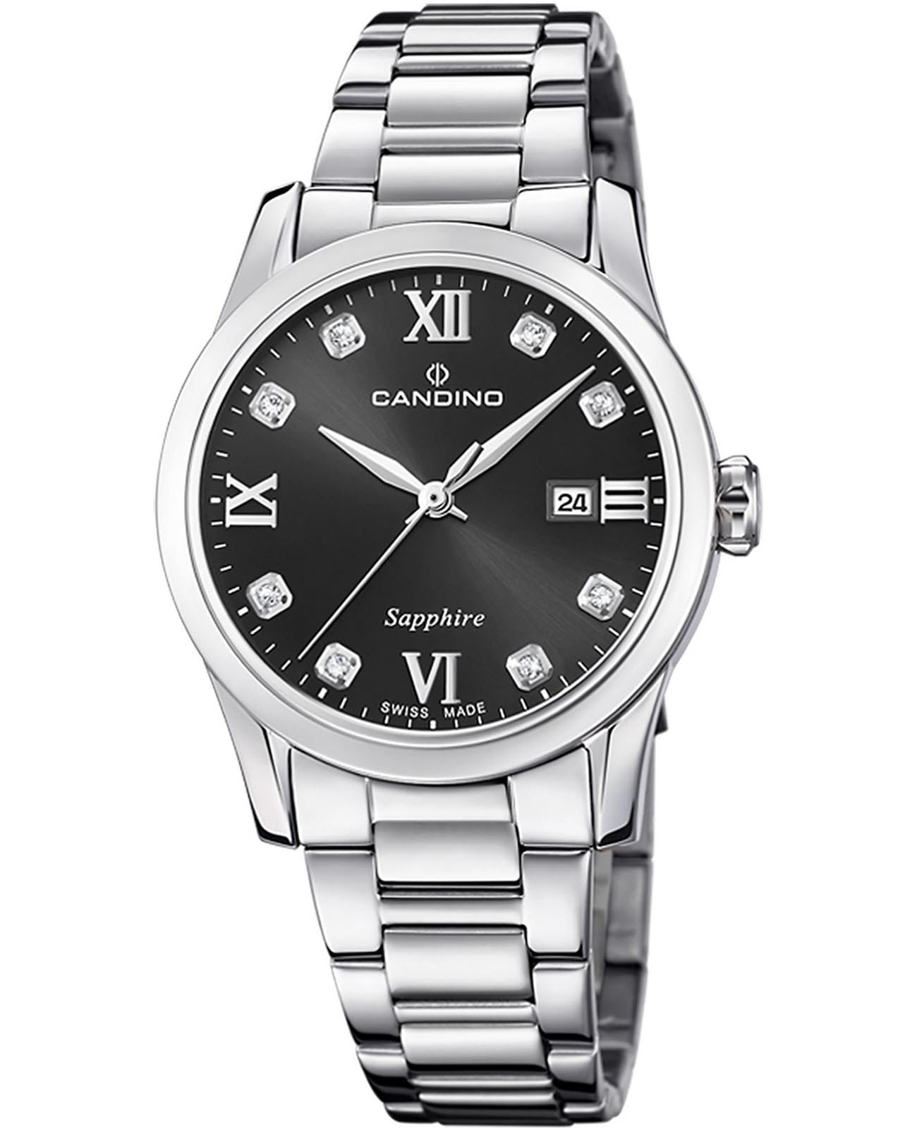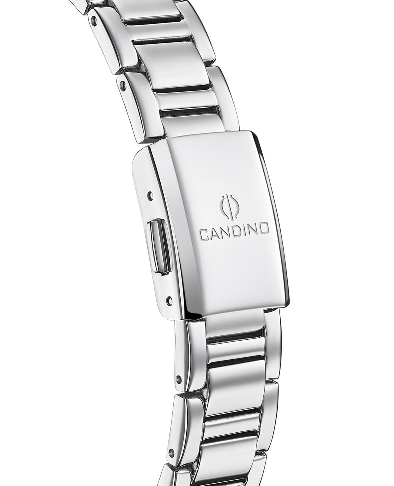 Женские наручные часы Candino Elegance C4738/4 с надёжным кварцевым механизмом. Сапфировое стеклоСапфировое стеклоПрочный и надёжный материал из кристалла сапфира синтетического происхождения, характеризующийся особой твёрдостью и устойчивостью к царапинам и повреждениям. с антибликовым покрытием, устойчивое к мелким механическим повреждениям. Корпус и браслет часов изготовлены из нержавеющей стали. Окошко даты находится в положении 3 часа. Стальной браслет на раскладной застёжкеРаскладная застёжкаТакой тип застёжки используется только на браслетах из металла. Она никогда не раскрывается полностью, происходит разделение на 2 и более частей. Раскладывающая застёжка снизит вероятность потери часов к минимуму.. Класс водозащиты: 50 метров, позволит защитить корпус от случайных брызг или капель дождя. Циферблат часов инкрустирован кристаллами.