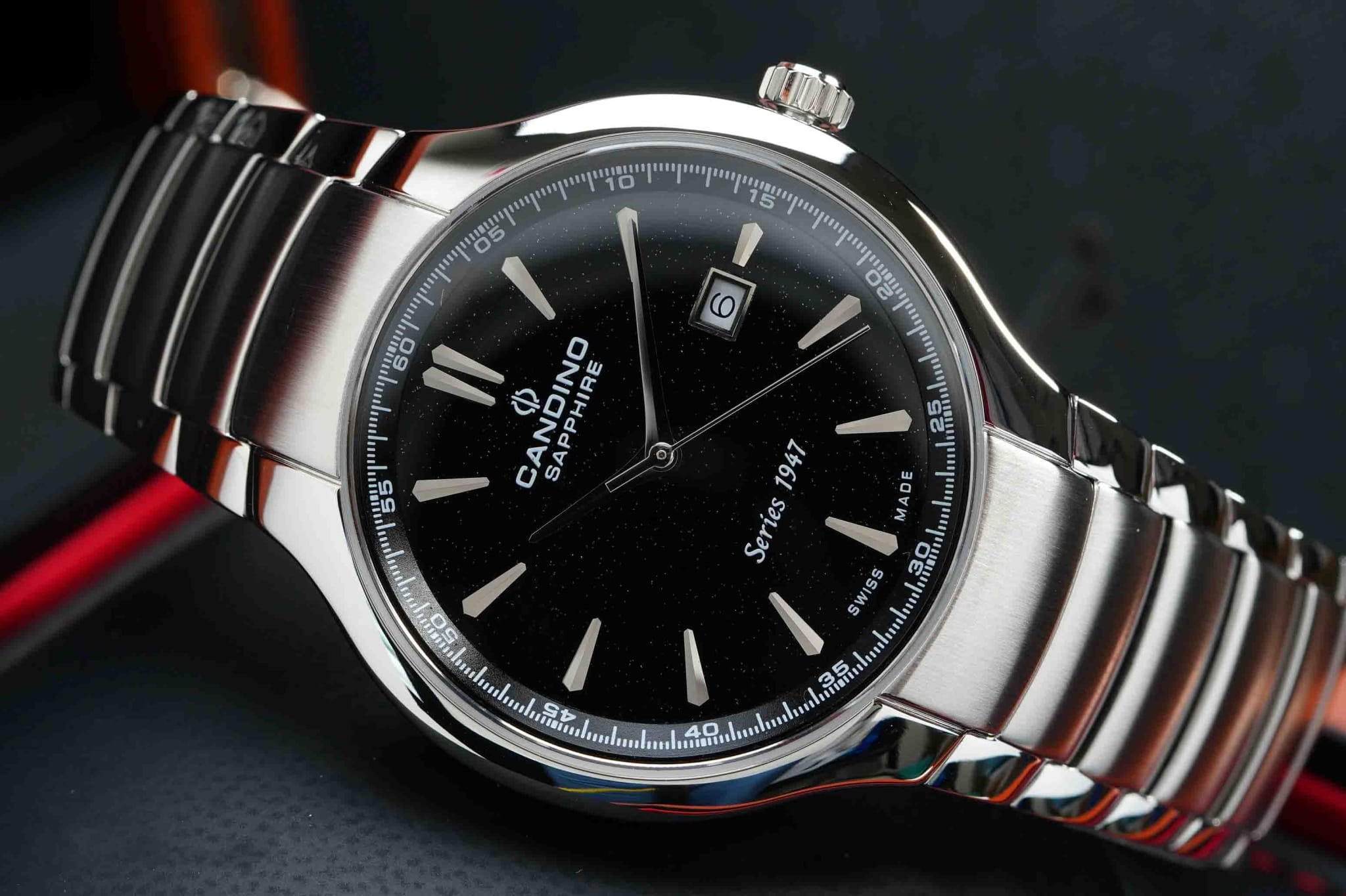 Мужские кварцевые часы Candino — это сочетание классического дизайна и швейцарского качества. Корпус диаметром 40 мм и толщиной 9,3 мм выполнен из нержавеющей стали. Циферблат чёрного цвета оформлен индексами и стрелками. Окошко даты расположено в положении 3 часов. Циферблат защищён сапфировым стекломСапфировое стеклоПрочный и надёжный материал из кристалла сапфира синтетического происхождения, характеризующийся особой твёрдостью и устойчивостью к царапинам и повреждениям., устойчивым к царапинам. Механизм — кварцевый калибр Ronda 705, произведённый в Швейцарии. Часы оснащены стальным браслетом с застёжкой «бабочка» с кнопкамиЗастёжка "бабочка"Такой вид застёжки дополняется предохранителями, помогающими избежать случайного раскрытия браслета. Обладают изящным исполнением. . Водонепроницаемость 100 м позволяет использовать часы в повседневных условиях. Гарантия — 2 года. Идеальный выбор для тех, кто ценит стиль, точность и надёжность.