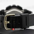 Популярная модель в чёрно-золотистом глянцевом исполнении имеет противоударный корпусУдаропрочный корпусМеханизм заключён в корпус, выполненный из современных материалов, устойчивых к ударам, механическим повреждениям и падению с высоты: инновационный пластик, карбон, нержавеющая сталь, титан., выдерживающий механические повреждения и падение с высоты. Он выполнен из полимерного пластика, такой же материал был выбран для гибкого браслета. Кварцевый механизм работает от батарейки, рассчитанной на 2 года службы. Светодиодная подсветкаСветодиодная подсветкаСветодиодная или LED-подсветка обеспечивает появление яркого холодного свечения за счёт LED-элементов - маленьких лампочек. Они потребляют минимальное количество энергии, чаще всего можно встретить 1 светодиод, в нижней части циферблата. дисплея. Минеральное стекло. Секундомер, будильник, мировое времяМировое время Полезное часовое усложнение, отображающее время в основных городах и известных областях по всему миру, оно связано с часовыми поясами, удобно для путешественников и бизнесменов. , автоматический календарь, таймер. Водостойкость 100 метров. Габариты: 43,4 x 46,3 x 15,8 мм.