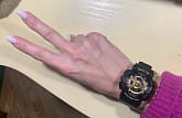 Лаконичная и женственная модель. На руке смотрится отлично . Есть множество функций: 5 будильников, мировое время, светодиодная подсветка , таймер, секундомер.