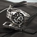 Кварцевый хронографХронографФункция позволяет измерять отрезки времени с особой точностью: часы, минуты, секунды. Верным признаком хронографа является наличие на циферблате 3 дополнительных окошек-счётчиков. понравится любителям активного образа жизни, динамичный дизайн модели станет отображением вашей жизненной позиции и стремления к победам. Чёрный циферблат с узором дополнен миниатюрными счётчиками, отличающимися оригинальным исполнением и расположением. Минеральное стекло устойчиво к царапинам. Срок службы батарейки - 3 года. Люминесцентная подсветкаЛюминесцентное покрытиеПозволяет считывать показания времени в темноте. Производители наносят на стрелки, часовые индексы, безель или поверхность циферблата светонакопительный состав, дающий холодное свечение.. Водонепроницаемость до 10 бар, чему дополнительно способствует закручивающаяся крышка. Секундомер, отображение даты. Габариты: 51 x 43,8 x 12,4 мм.