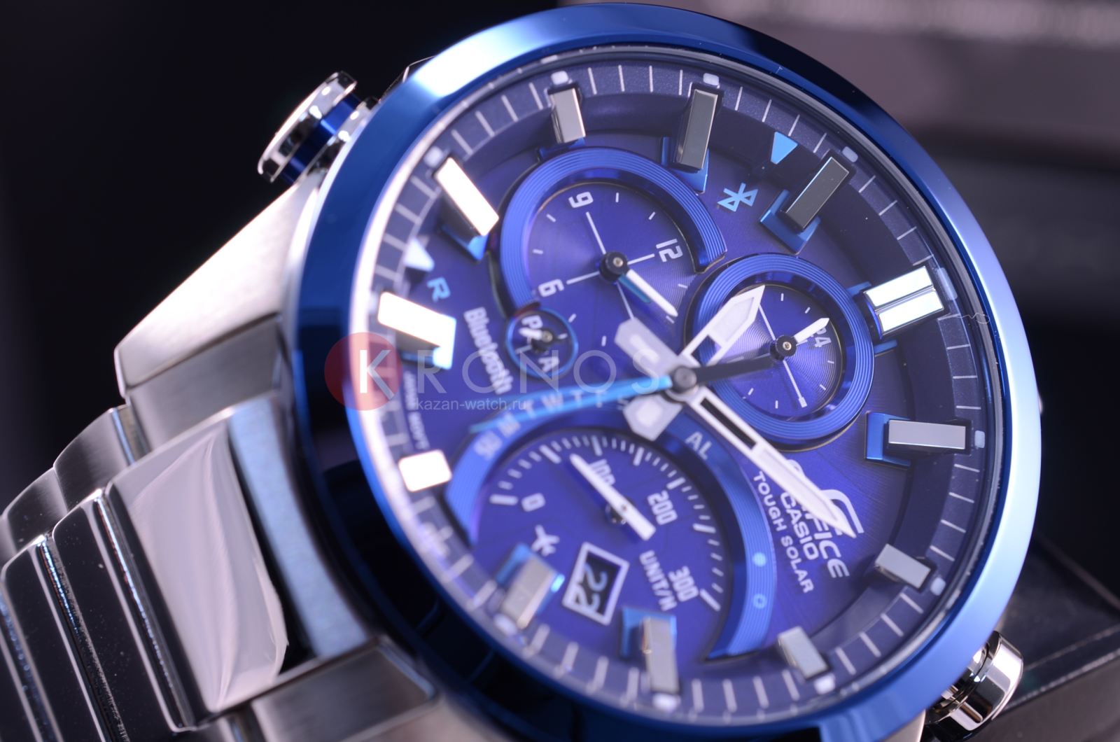 Стильный представитель автомобильной серии станет идеальным аксессуаром для ежедневного ношения. Наручные часы показывают действительно точное время благодаря технологии Bluetooth 4.0BluetoothСовременная технология, позволяющая синхронизировать часы с телефоном и переносить данные. Часы с Bluetooth расширяют возможности вашего смартфона и делают его использование ещё более удобным., модель корректирует показатели с помощью синхронизации с интернет-сервером точного времени. Японский кварцевый механизм получает питание за счёт солнечной батареи, реализуется технология . Минеральное стекло. Ударопрочный корпусУдаропрочный корпусМеханизм заключён в корпус, выполненный из современных материалов, устойчивых к ударам, механическим повреждениям и падению с высоты: инновационный пластик, карбон, нержавеющая сталь, титан. и браслет из нержавеющей стали 316L. БезельБезельВнешний ободок, закрепляющий стекло. В спортивных часах так называется поворотное кольцо с делениями на циферблате, выполняет роль таймера – замеряет отрезки времени на шкале. Неподвижный безель – элемент декора. Однонаправленно вращающийся безель на дайверских часах позволяет фиксировать моменты погружения и выныривания на поверхность. с синим IP-покрытиемIP-покрытиеМетод ионного напыления. Демонстрирует повышенную устойчивость к истиранию, окислению и химическим веществам. Под воздействием высокого давления и температуры около 1500°C молекулы металла надёжно соединяются с частицами корпуса часов.. Возможность включить авиарежим. Заводная головка с системой защиты. Люминесцентная подсветкаЛюминесцентное покрытиеПозволяет считывать показания времени в темноте. Производители наносят на стрелки, часовые индексы, безель или поверхность циферблата светонакопительный состав, дающий холодное свечение.. Водонепроницаемость 10 бар. Отображение наличия поступивших сообщений электронной почты, будильник, секундомер, функция поиска телефона, хронографХронографФункция позволяет измерять отрезки времени с особой точностью: часы, минуты, секунды. Верным признаком хронографа является наличие на циферблате 3 дополнительных окошек-счётчиков., поиск телефона, отображение числа и дня недели, расчёт средней скорости пройденной дистанции. Габариты: 52 x 48,1 x 14,2 мм.