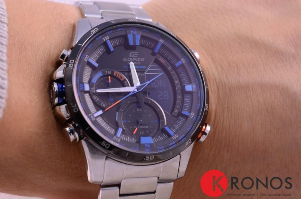 Мужские наручные часы Casio Edifice надежные и практичны. Кварцевый японский механизм Miyota. Точность хода не хуже -10 +15 сек./в месяц. Часы оснащены функциями: Цифровой компас. Встроенный цифровой компас определяет северный магнитный полюс.Термометр (-10°C / +60°C). Функция мирового времени. Функция секундомера- 1/20 сек. - 1 час. 5 ежедневных будильников. Автоматический календарь. Отображение времени можно в 12-часовом или 24-часовом формате. Корпус и браслет выполнены из нержавеющей стали. Минеральное стекло устойчиво к появлению царапин. Водонепроницаемость 100М. В часах можно плавать. Степень водонепроницаемости не является величиной, эквивалентной функциональной рабочей глубине.
