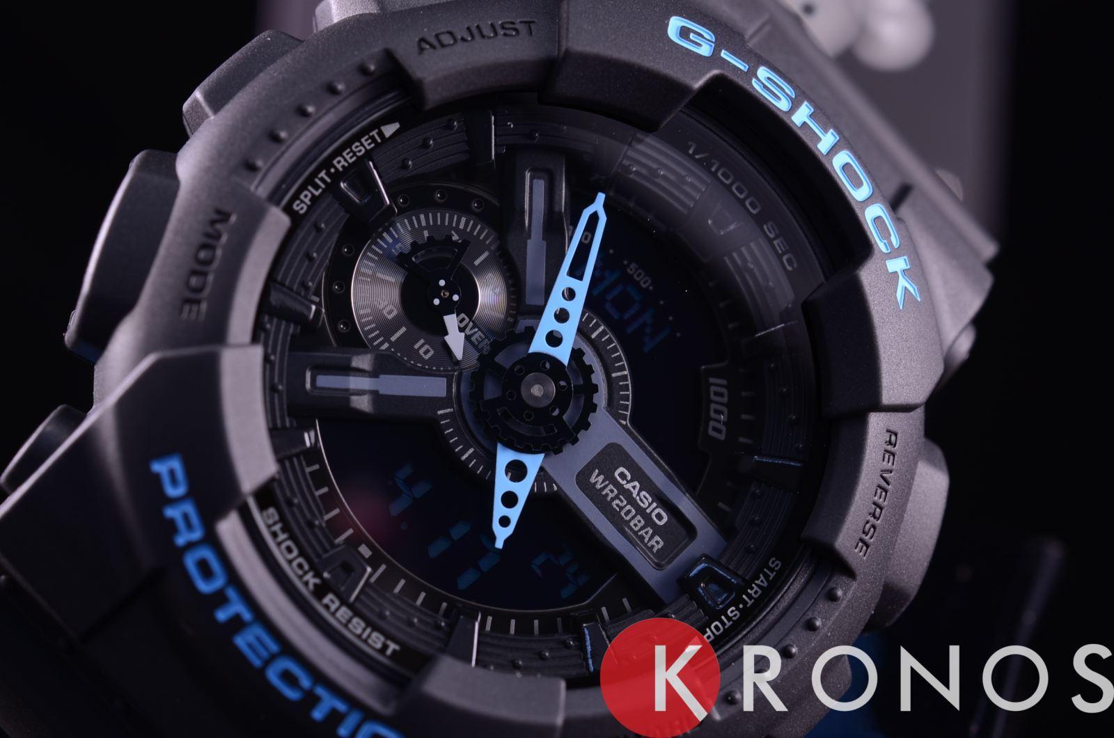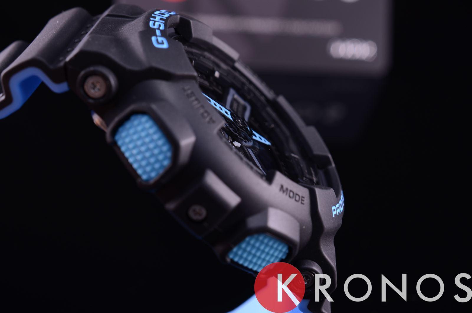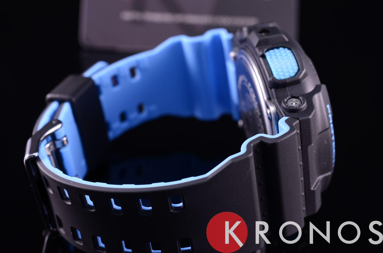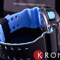 Оригинально смотрится двухцветный ремешок с внутренней стороной ярко-голубого цвета. Многоуровневый циферблат защищает закаленное минеральное стекло, устойчивое к царапинам. Японский кварцевый механизм получает питание от аккумулятора, срок службы которого составляет 2 года. Противоударный корпусУдаропрочный корпусМеханизм заключён в корпус, выполненный из современных материалов, устойчивых к ударам, механическим повреждениям и падению с высоты: инновационный пластик, карбон, нержавеющая сталь, титан. из полимерного пластика. Водонепроницаемость 20 бар. Устранение влияния магнитного поля. Светодиодная подсветкаСветодиодная подсветкаСветодиодная или LED-подсветка обеспечивает появление яркого холодного свечения за счёт LED-элементов - маленьких лампочек. Они потребляют минимальное количество энергии, чаще всего можно встретить 1 светодиод, в нижней части циферблата.. Секундомер, хронографХронографФункция позволяет измерять отрезки времени с особой точностью: часы, минуты, секунды. Верным признаком хронографа является наличие на циферблате 3 дополнительных окошек-счётчиков., расчёт средней скорости пройденного пути, календарь до 2099 года, мировое времяМировое время Полезное часовое усложнение, отображающее время в основных городах и известных областях по всему миру, оно связано с часовыми поясами, удобно для путешественников и бизнесменов. , таймер, будильник. Габариты: 55 x 51,2 x 16,9 мм.