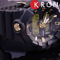 Стильный аксессуар чёрного цвета имеет привлекательные акценты золотистого цвета, что смягчает его брутальный вид. Часы с крупными стрелками и метками обеспечивают идеальную читаемость показателей времени, кнопка подсветки для удобства вынесена в нижнюю часть ударопрочного корпусаУдаропрочный корпусМеханизм заключён в корпус, выполненный из современных материалов, устойчивых к ударам, механическим повреждениям и падению с высоты: инновационный пластик, карбон, нержавеющая сталь, титан.. Он, как и ремешок, выполнен из полимерного материала, выдерживающим удары и падения. Японский кварцевый механизм получает питание от батарейки, отличающейся повышенным сроком службы до 5 лет. Закаленное минеральное стекло. Яркая светодиодная подсветкаСветодиодная подсветкаСветодиодная или LED-подсветка обеспечивает появление яркого холодного свечения за счёт LED-элементов - маленьких лампочек. Они потребляют минимальное количество энергии, чаще всего можно встретить 1 светодиод, в нижней части циферблата.. Водозащита 200 метров. Функция перемещения стрелок для быстрого доступа к данным малых счётчиков. Таймер обратного отсчёта, UTCUTCВсемирное кординационное время, не имеющее привязки к географическому положению Гринвича, основывается на атомном отсчёте времени. Регулировка времени осуществляется более точно, чем устаревшее GMT.