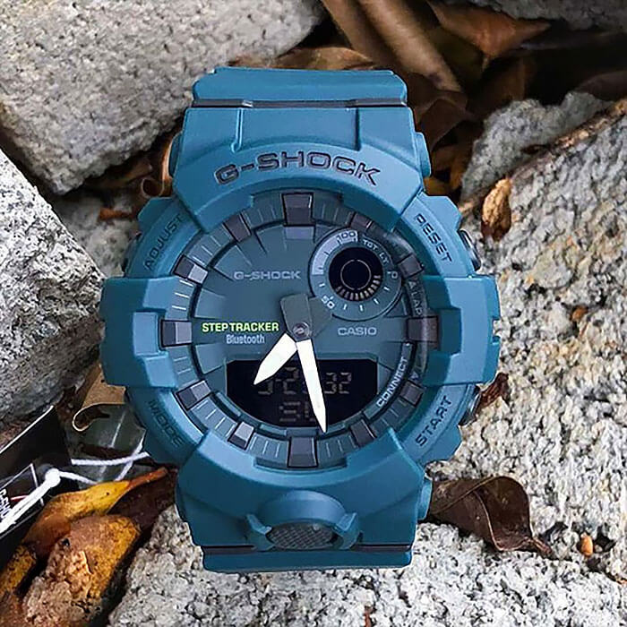 Наручные часы изумрудного оттенка с противоударным корпусомУдаропрочный корпусМеханизм заключён в корпус, выполненный из современных материалов, устойчивых к ударам, механическим повреждениям и падению с высоты: инновационный пластик, карбон, нержавеющая сталь, титан. сделаны из полимерного пластика, который устойчив к повреждениям и падению с высоты. Такой же материал был выбран и для гибкого ремешка, обеспечивающего комфортное ношение. Это первая модель из линейки G-Shock, оснащённая шагомером, теперь вы сможете в любое время следить за своей активностью. Японский кварцевый механизм работает от батарейки, срок её службы - 2 года. Минеральное стекло. Светодиодная подсветкаСветодиодная подсветкаСветодиодная или LED-подсветка обеспечивает появление яркого холодного свечения за счёт LED-элементов - маленьких лампочек. Они потребляют минимальное количество энергии, чаще всего можно встретить 1 светодиод, в нижней части циферблата. циферблата, люминесцентное покрытиеЛюминесцентное покрытиеПозволяет считывать показания времени в темноте. Производители наносят на стрелки, часовые индексы, безель или поверхность циферблата светонакопительный состав, дающий холодное свечение. стрелок. Bluetooth-синхронизацияBluetoothСовременная технология, позволяющая синхронизировать часы с телефоном и переносить данные. Часы с Bluetooth расширяют возможности вашего смартфона и делают его использование ещё более удобным., таймер с автоповтором, секундомер, автоматический календарь, будильник. Водостойкость при давлении 20 бар. Габариты: 54,1 x 48,6 x 15,5 мм.