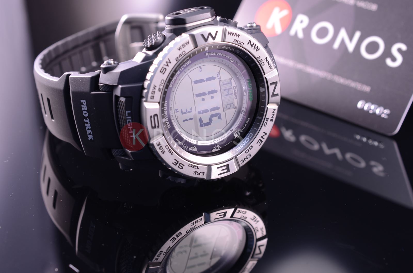 Часы, созданные для любителей активного отдыха. Питание от солнечной энергии Tough Solar - солнечные батарейки большой мощности, индикатор заряда батареи. Функция автоматического сохранения энергии. Модуль часов рассчитан на работу при низких температурах до -10°С/14°F. Прием радиосигнала (Европа, США, Япония, Китай). Технология Triple Sensor позволяет точно и легко определять сторону света, температуру и атмосферное давление. Термометр от -10° до +60°С с точностью 0,1°C. Барометр - измерение атмосферного давления от 260 до 1100 гПа (от 195 до 825 мм рт. ст.). Встроенный цифровой компас. Диапазон измерения от 0° до 359° с точностью 1°. Высотомер - встроенный датчик барометрического давления. Данные о восходе/закате солнца. После введения географического местоположения, на экране будет отображаться восход и закат солнца для любой установленной даты. Секундомер с точностью показаний 1/100с Сплит-хронограф. Таймер обратного отсчета от 1мин до 1ч. Функция перемещения стрелок. Функция отключения/включения звука. Будильник (5 установок). Минеральное стекло устойчиво к появлению царапин. Водонепроницаемость (10 Бар).