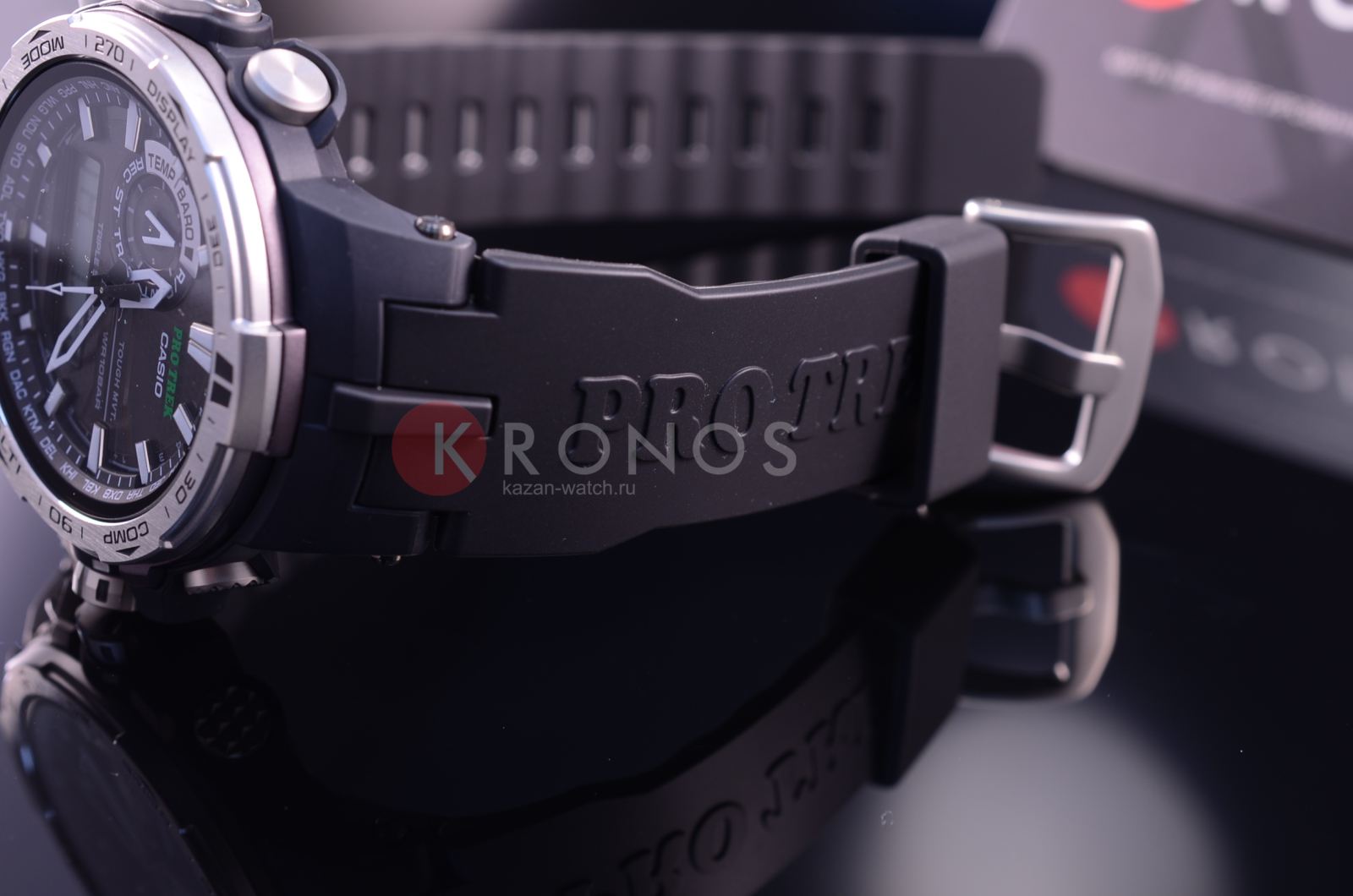 Часы, созданные для любителей активного отдыха. Питание от солнечной энергии Tough Solar - солнечные батарейки большой мощности, индикатор заряда батареи. Функция автоматического сохранения энергии. Модуль часов рассчитан на работу при низких температурах до -10°С/14°F. Прием радиосигнала (Европа, США, Япония, Китай). Технология Triple Sensor позволяет точно и легко определять сторону света, температуру и атмосферное давление. Термометр от -10° до +60°С с точностью 0,1°C. Барометр - измерение атмосферного давления от 260 до 1100 гПа (от 195 до 825 мм рт. ст.). Встроенный цифровой компас. Диапазон измерения от 0° до 359° с точностью 1°. Высотомер - встроенный датчик барометрического давления с возможностью вывода результатов в единицах высоты над уровнем моря (от -700 до 10000 метров). График набор высоты суммирует количество метров. Секундомер с точностью показаний 1/100с и временем измерения 24ч. Сплит-хронограф. Таймер обратного отсчета от 1мин до 1ч. Функция перемещения стрелок. Функция отключения/включения звука. Будильник (5 установок). Минеральное стекло устойчиво к появлению царапин. Водонепроницаемость (10 Бар).