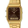 Мужские японские часы Casio Collection AQ-230GA-5A из коллекции Casio Vintage представляют собой компактный и модный аксессуар. Данная модель сочетает в себе стильный дизайн, симметричность деталей и практичность. Аналоговый способ отображения времени. Кварцевый механизм. Есть функция мирового времениМировое время Полезное часовое усложнение, отображающее время в основных городах и известных областях по всему миру, оно связано с часовыми поясами, удобно для путешественников и бизнесменов. . Многофункциональный календарь, отображающий число, день недели и месяц. Пластиковое стекло. Класс водозащиты: 30 метров, позволит защитить корпус от случайных брызг или капель дождя. СекундомерСекундомерСекундоме́р — прибор, способный измерять интервалы времени с точностью до долей секунды., ежедневный будильникБудильникБуди́льник — часы, в заданный момент времени подающие звуковой, световой и/или в редких случаях другой сигнал..