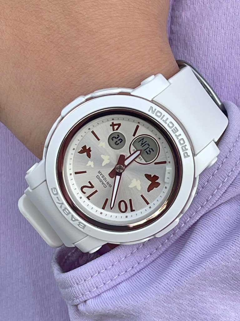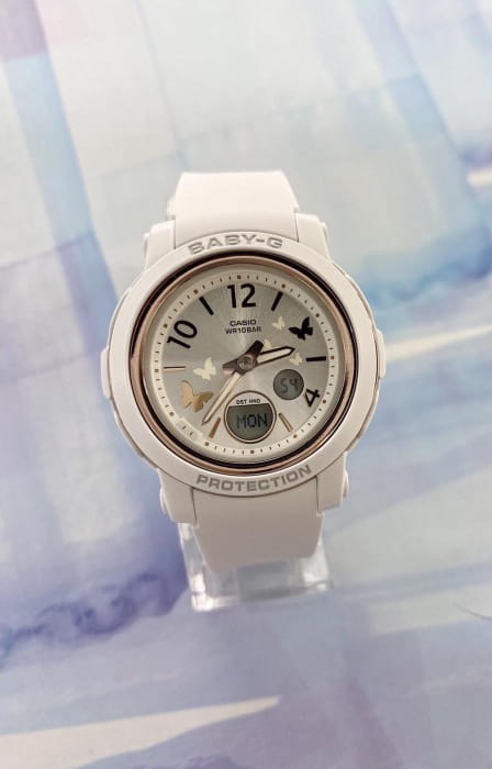 Японские женские многофункциональные часы BGA-290BD-7A из коллекции Baby-G. Серия, которая выражает спортивность и цвет, которые являются основой бренда Baby-G. Функции: автоматическая светодиодная подсветка, необритовое покрытиеПодсветка NeobriteИспользование светонакопительных составов на основе сульфида цинка или алюмината стронция, яркий свет можно наблюдать на протяжении 6-10 часов после «зарядки» часов около источника света., ударопрочный корпусУдаропрочный корпусМеханизм заключён в корпус, выполненный из современных материалов, устойчивых к ударам, механическим повреждениям и падению с высоты: инновационный пластик, карбон, нержавеющая сталь, титан., функция Мирового времениМировое время Полезное часовое усложнение, отображающее время в основных городах и известных областях по всему миру, оно связано с часовыми поясами, удобно для путешественников и бизнесменов. , секундомерСекундомерСекундоме́р — прибор, способный измерять интервалы времени с точностью до долей секунды., сплит-хронографСплит-хронографИспользуется для измерения продолжительности нескольких временных отрезков, начинающихся одновременно, а заканчивающихся в разное время., UTCUTCВсемирное кординационное время, не имеющее привязки к географическому положению Гринвича, основывается на атомном отсчёте времени. Регулировка времени осуществляется более точно, чем устаревшее GMT.