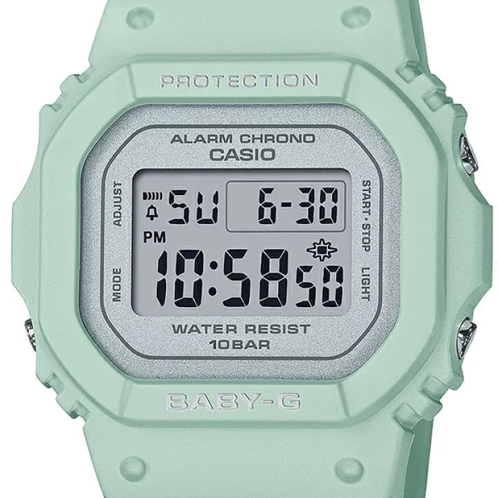 Женские противоударные японские часы Casio Baby-G BGD-565SC-3, кварцевый механизм с высокой точностью. Класс водозащиты: 100 метров, позволит плавать, нырять и заниматься другими водными видами спорта. Корпус и браслет часов изготовлены из пластика. Ударопрочный корпусУдаропрочный корпусМеханизм заключён в корпус, выполненный из современных материалов, устойчивых к ударам, механическим повреждениям и падению с высоты: инновационный пластик, карбон, нержавеющая сталь, титан. защищает механизм от ударов и вибрации. Минеральное стеклоМинеральное стеклоМинеральное стекло представляет собой искусственно выращенный минерал кварца. Такое стекло отличается особой устойчивостью к повреждениям и царапинам. Уступает по некоторым качествам сапфировому стеклу. устойчивое к мелким механическим повреждениям. После первичной настройки автоматический вечный календарьВечный календарьКлассическое часовое усложнение, представляющее собой календарь, рассчитанный на несколько лет вперёд (стандартно – до 2099 года). Определяет текущую дату, день недели, месяц. всегда отображает точную дату. СекундомерСекундомерСекундоме́р — прибор, способный измерять интервалы времени с точностью до долей секунды. измеряет прошедшее время с точностью в 1/100 секунды, пределы измерения достигают 24 часов. Электролюминесцентная подсветкаЭлектролюминесцентная подсветкаЭлектролюминесцентная панель устанавливается под ЖК-экраном часов, при нажатии кнопки электричество преобразуется в свет за счёт подачи напряжения на атомы фосфора, такой тип подсветки позволяет освещать весь циферблат. освещает весь циферблат, после отпускания кнопки свечение продолжается еще некоторое время. Модель имеет пять независимых будильниковБудильникБуди́льник — часы, в заданный момент времени подающие звуковой, световой и/или в редких случаях другой сигнал. и ежечасный сигнал.