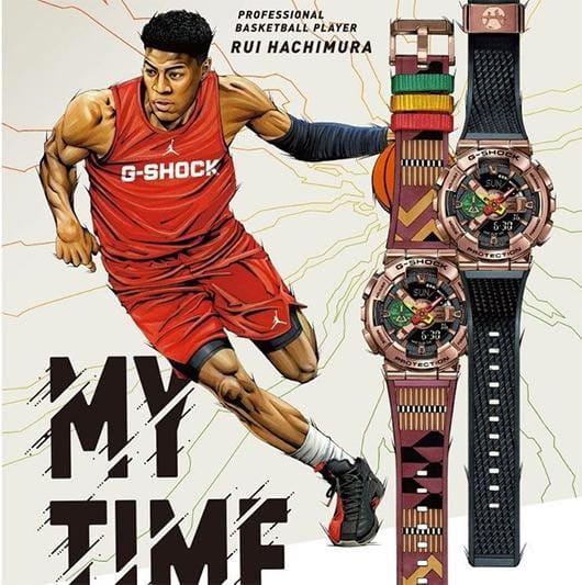 Выпущенные ограниченной серией часы Casio G-Shock GM-110RH-1AER  вдохновлены одним из самых успешных японских баскетболистов в NBA, игроку «Вашингтон Уизардс» — Руи Хатимуре. Красные, желтые и зеленые элементы циферблата символизируют флаг Бенина, родины баскетболиста. В комплекте поставки часов имеется ремешок, украшенный африканскими узорами, а на задней же крышке часов расположился фирменный логотип Руи Хатимуры.
