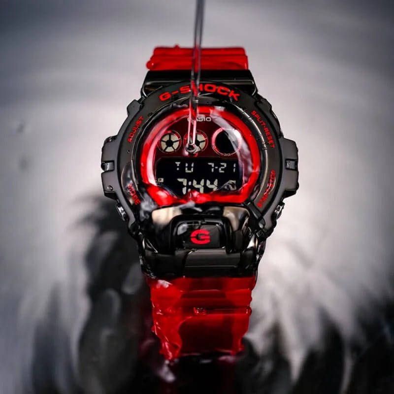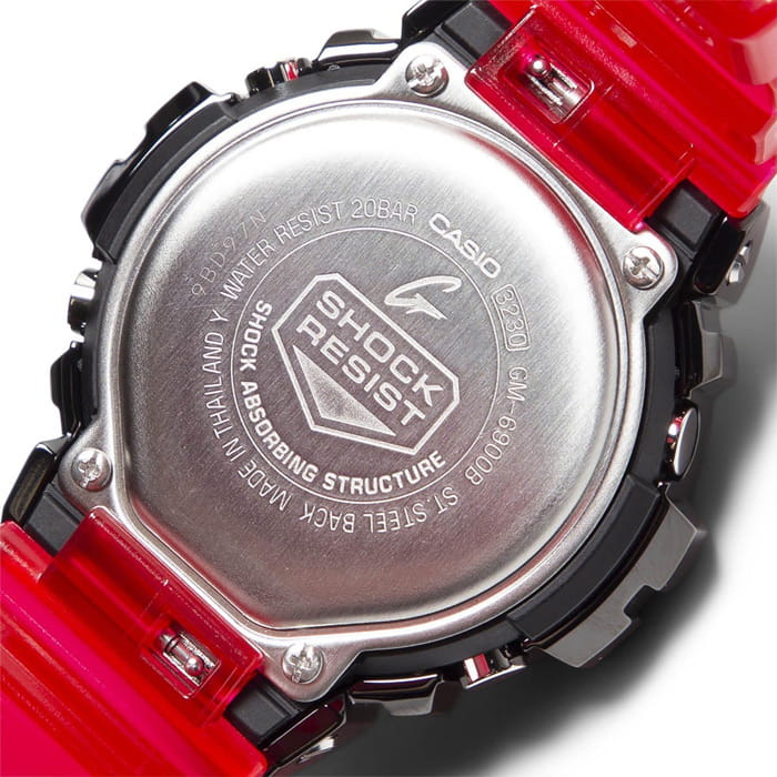 Наручные часы выполнены в облике моделей 80-х годов. 3 окошка Triple Graph разного размера расположились в верхней части красного циферблата, в нижней – цифровой дисплей. Противоударный корпусУдаропрочный корпусМеханизм заключён в корпус, выполненный из современных материалов, устойчивых к ударам, механическим повреждениям и падению с высоты: инновационный пластик, карбон, нержавеющая сталь, титан. сделан из сочетания пластика и карбоновых волокон, он защищён стальной полированной накладкой с износоустойчивым IP-покрытиемIP-покрытиеМетод ионного напыления. Демонстрирует повышенную устойчивость к истиранию, окислению и химическим веществам. Под воздействием высокого давления и температуры около 1500°C молекулы металла надёжно соединяются с частицами корпуса часов.. Комфортный ремешок изготовлен из полупрозрачного полимера. Японский кварцевый механизм. Эксплуатационный срок батарейки – 2 года. Минеральное стеклоМинеральное стеклоМинеральное стекло представляет собой искусственно выращенный минерал кварца. Такое стекло отличается особой устойчивостью к повреждениям и царапинам. Уступает по некоторым качествам сапфировому стеклу.. Электролюминесцентная подсветкаЭлектролюминесцентная подсветкаЭлектролюминесцентная панель устанавливается под ЖК-экраном часов, при нажатии кнопки электричество преобразуется в свет за счёт подачи напряжения на атомы фосфора, такой тип подсветки позволяет освещать весь циферблат. сине-зелёного оттенка. Водостойкость 200 метров. Световая индикация сигнала. СекундомерСекундомерСекундоме́р — прибор, способный измерять интервалы времени с точностью до долей секунды., многофункциональный будильникБудильникБуди́льник — часы, в заданный момент времени подающие звуковой, световой и/или в редких случаях другой сигнал., таймерТаймерОтсчитывает секунды в обратном направлении в заданном интервале времени., хронографХронографФункция позволяет измерять отрезки времени с особой точностью: часы, минуты, секунды. Верным признаком хронографа является наличие на циферблате 3 дополнительных окошек-счётчиков., автокалендарь. Габариты: 49,7 x 53,9 x 18,6 мм.