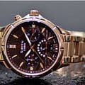 Тёмный циферблат с оригинальным узором идеально смотрится в сочетании с цветом розового золота, такой оттенок был получен благодаря нанесению IP-покрытияIP-покрытиеМетод ионного напыления. Демонстрирует повышенную устойчивость к истиранию, окислению и химическим веществам. Под воздействием высокого давления и температуры около 1500°C молекулы металла надёжно соединяются с частицами корпуса часов.. В качестве декорирующих элементов использованы оригинальные кристаллы Swarovski с роскошным сиянием. Корпус и браслет выполнены из долговечной хирургической стали 316L. Минеральное стекло. Индикация даты и дня недели. Люминесцентная подсветкаЛюминесцентное покрытиеПозволяет считывать показания времени в темноте. Производители наносят на стрелки, часовые индексы, безель или поверхность циферблата светонакопительный состав, дающий холодное свечение.. Водозащита до 50 метров. Габариты: 41,4 x 45,3 x 11,2 мм.