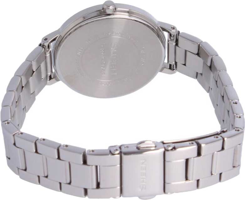 Женские японские наручные часы Casio Sheen SHE-4535YD-2A, кварцевый механизм с высокой точностью. Сапфировое стеклоСапфировое стеклоПрочный и надёжный материал из кристалла сапфира синтетического происхождения, характеризующийся особой твёрдостью и устойчивостью к царапинам и повреждениям. устойчивое к появлению царапин, обладающее высокой прозрачностью. БезельБезельВнешний ободок, закрепляющий стекло. В спортивных часах так называется поворотное кольцо с делениями на циферблате, выполняет роль таймера – замеряет отрезки времени на шкале. Неподвижный безель – элемент декора. Однонаправленно вращающийся безель на дайверских часах позволяет фиксировать моменты погружения и выныривания на поверхность. крашен кристаллами. Апертура даты находится в положении 6 часов. Класс водозащиты: 50 метров, позволит защитить корпус от случайных брызг или капель дождя. Корпус часов изготовлен из стали. Раскладная застёжкаРаскладная застёжкаТакой тип застёжки используется только на браслетах из металла. Она никогда не раскрывается полностью, происходит разделение на 2 и более частей. Раскладывающая застёжка снизит вероятность потери часов к минимуму..