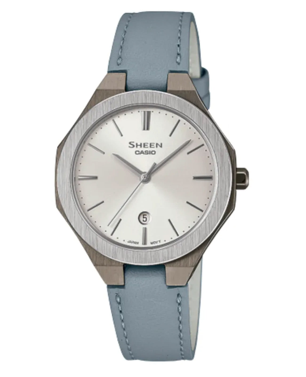Женские японские часы Casio Sheen SHE-4563GYL-7AUDF, кварцевый механизм с высокой точностью. Сапфировое стеклоСапфировое стеклоПрочный и надёжный материал из кристалла сапфира синтетического происхождения, характеризующийся особой твёрдостью и устойчивостью к царапинам и повреждениям., защищающее от царапин. Корпус изготовлен из нержавеющей стали. Окошко даты расположена на отметке 6 часов. Класс водозащиты: 50 метров, позволит защитить корпус от случайных брызг или капель дождя. Кожаный ремешок на стандартной застежке.