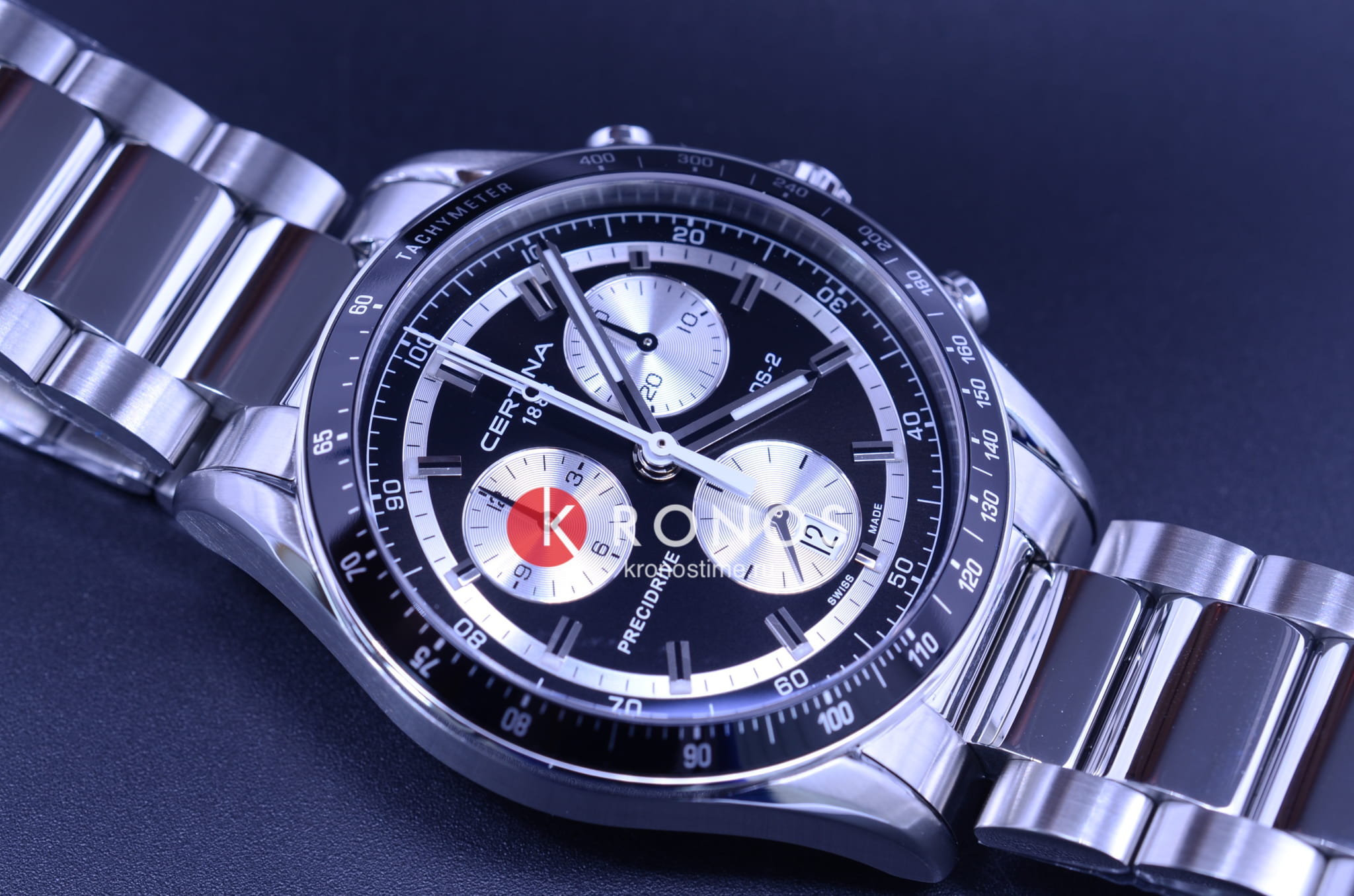 Брендовый аксессуар сразу притягивает внимание. Циферблат «panda-style», дополненный контрастными элементами и функциональными окошками, отражает спортивную динамичность. Алюминиевый безельБезельВнешний ободок, закрепляющий стекло. В спортивных часах так называется поворотное кольцо с делениями на циферблате, выполняет роль таймера – замеряет отрезки времени на шкале. Неподвижный безель – элемент декора. Однонаправленно вращающийся безель на дайверских часах позволяет фиксировать моменты погружения и выныривания на поверхность. размечен шкалой тахиметраТахиметрРазмеченная шкала, располагается на ободке или безеле часов. Тахиметр позволяет рассчитать скорость на определённом участке пути, расстояние измеряется в километрах или милях.. Часы основаны на концепции Double SecurityDS ConceptDouble Security Concept, обозначает двойную надёжность и безупречную точность часов Certina. Двойная система защиты подразумевает обеспечение максимальной устойчивости к ударам и высоких показателей водонепроницаемости., что свидетельствует о высокой устойчивости к ударам и водонепроницаемости (до 10 бар) модели. Швейцарский кварцевый калибр ETA 251.264 Precidrive™Precidrive™Инновационный кварцевый механизм Certina. Часы, оснащённые этим швейцарским калибром, приравниваются к точности к сертифицированным хронометрам, точность хода составляет +/-10 секунд в год., измеряющий время с точностью до одной сотой секунды. Двухстороннее антибликовое покрытие для стекла из сапфира. Корпус и браслет из стали 316L с антикоррозионными свойствами. Задняя крышка с фирменной гравировкой. ХронографХронографФункция позволяет измерять отрезки времени с особой точностью: часы, минуты, секунды. Верным признаком хронографа является наличие на циферблате 3 дополнительных окошек-счётчиков., календарь, индикатор EOLEOLПредставляет собой систему, уведомляющую владельца часов о необходимости замены элемента питания. За 2 недели до полного разряда батарейки секундная стрелка перестаёт ходить чётко и начинает перепрыгивать на 3-4 деления., секундомер. Диаметр корпуса: 41 мм.