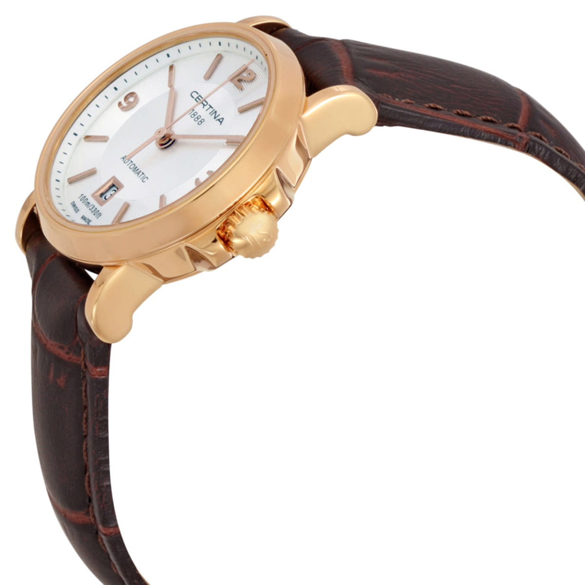 Женские швейцарские часы с сапфировым стекломСапфировое стеклоПрочный и надёжный материал из кристалла сапфира синтетического происхождения, характеризующийся особой твёрдостью и устойчивостью к царапинам и повреждениям. Certina DS Caimano C017.207.36.037.00 привлекает внимание окружающих приятным сочетанием простоты и кокетства. DS Caimano. Водонепроницаемые женские часы. В механизме 25 камней, частота 28800 полуколебаний в час. Запас хода 38 часов. Круглый стальной корпус с PVDPVDУльтратонкое покрытие наносится в технике вакуумного напыления, сочетает в себе нитрид титана особой прочности со слоем золота или оксида хрома. Несёт в себе декоративную или защитную функцию. покрытием. Циферблат выполнен по технологии Sunray (солнечные лучи). Узкие заостренные прямоугольные стрелки в стиле Baton. Метки в виде штрихов, 3, 6 и 12 часовые метки в виде арабских цифр.