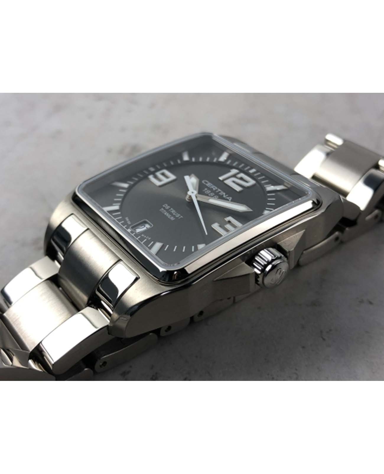 Мужские швейцарские часы Certina DS Trust C0195104408700, кварцевый механизм с высокой точностью. Сапфировое стеклоСапфировое стеклоПрочный и надёжный материал из кристалла сапфира синтетического происхождения, характеризующийся особой твёрдостью и устойчивостью к царапинам и повреждениям. устойчивое к появлению царапин, обладающее высокой прозрачностью. Корпус изготовлен из нержавеющей стали. Стрелки с люминесцентным покрытиемЛюминесцентное покрытиеПозволяет считывать показания времени в темноте. Производители наносят на стрелки, часовые индексы, безель или поверхность циферблата светонакопительный состав, дающий холодное свечение.. Окошко даты находится в положении 6 часов. Класс водозащиты: 100 метров, позволит плавать, нырять и заниматься другими водными видами спорта. Стальной браслет на застёжке-бабочке с кнопкамиЗастёжка "бабочка"Такой вид застёжки дополняется предохранителями, помогающими избежать случайного раскрытия браслета. Обладают изящным исполнением. .