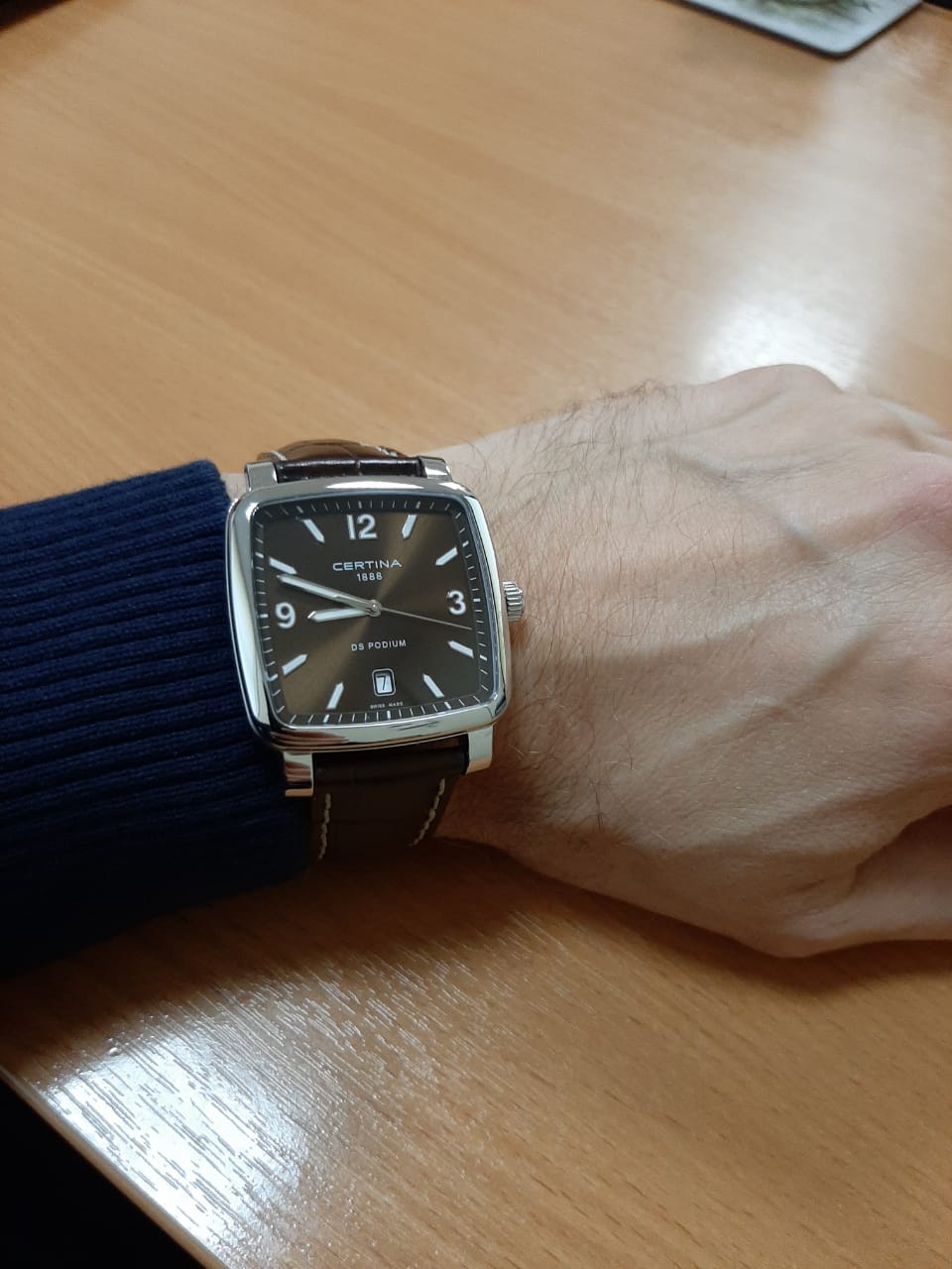 Одни из самых надежных часов в своем ценовом сегменте. , Часы Certina, как и многие швейцарские часто выпускаются с браслетами. Мне нравится кожа. Она всегда аккуратно облегает запястье и не ощущается при носке. Также часы обладают высокой степенью влагоустойчивости. Показатель впечатляет - WR100-10bar. Это погружение до 100 метров в воду.