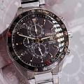 Citizen Chronograph AN3681-57E часы-хронографХронографФункция позволяет измерять отрезки времени с особой точностью: часы, минуты, секунды. Верным признаком хронографа является наличие на циферблате 3 дополнительных окошек-счётчиков. с секундомеромСекундомерСекундоме́р — прибор, способный измерять интервалы времени с точностью до долей секунды. спортивного дизайна с высоким уровнем водозащиты. Корпус из нержавеющей стали диаметром 44 мм идеально сбалансирован. Минеральное стеклоМинеральное стеклоМинеральное стекло представляет собой искусственно выращенный минерал кварца. Такое стекло отличается особой устойчивостью к повреждениям и царапинам. Уступает по некоторым качествам сапфировому стеклу. обеспечивает отличную защиту циферблата от царапин. Часы работают на основе кварцевого механизма. Стальной браслет на раскладной застёжкеРаскладная застёжкаТакой тип застёжки используется только на браслетах из металла. Она никогда не раскрывается полностью, происходит разделение на 2 и более частей. Раскладывающая застёжка снизит вероятность потери часов к минимуму. идеально дополняют дизайн часов, обеспечивая комфортное ношение. Стрелки и метки на циферблате имеют люминесцентное покрытиеЛюминесцентное покрытиеПозволяет считывать показания времени в темноте. Производители наносят на стрелки, часовые индексы, безель или поверхность циферблата светонакопительный состав, дающий холодное свечение. позволяющее легко определять время даже в темноте. БезельБезельВнешний ободок, закрепляющий стекло. В спортивных часах так называется поворотное кольцо с делениями на циферблате, выполняет роль таймера – замеряет отрезки времени на шкале. Неподвижный безель – элемент декора. Однонаправленно вращающийся безель на дайверских часах позволяет фиксировать моменты погружения и выныривания на поверхность. с IP-покрытиемIP-покрытиеМетод ионного напыления. Демонстрирует повышенную устойчивость к истиранию, окислению и химическим веществам. Под воздействием высокого давления и температуры около 1500°C молекулы металла надёжно соединяются с частицами корпуса часов. и шкалой тахиметраТахиметрРазмеченная шкала, располагается на ободке или безеле часов. Тахиметр позволяет рассчитать скорость на определённом участке пути, расстояние измеряется в километрах или милях.. Секундомер с точностью 1с и временем измерения 12ч отображается центральной стрелкой. Циферблат с метками в виде штрихов выполнен по технологии Sunray (солнечные лучи). Окошко даты находится в положении 3 часа. Часы обладают впечатляющей водонепроницаемостью до 100WR, что делает их идеальными для повседневной носки.