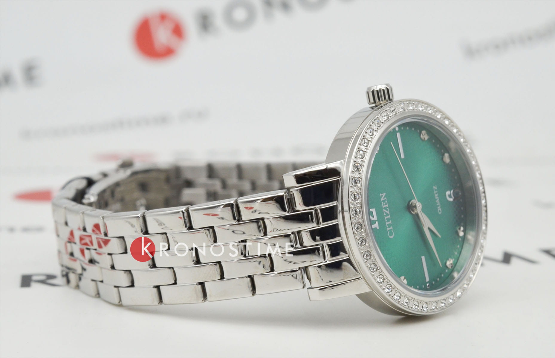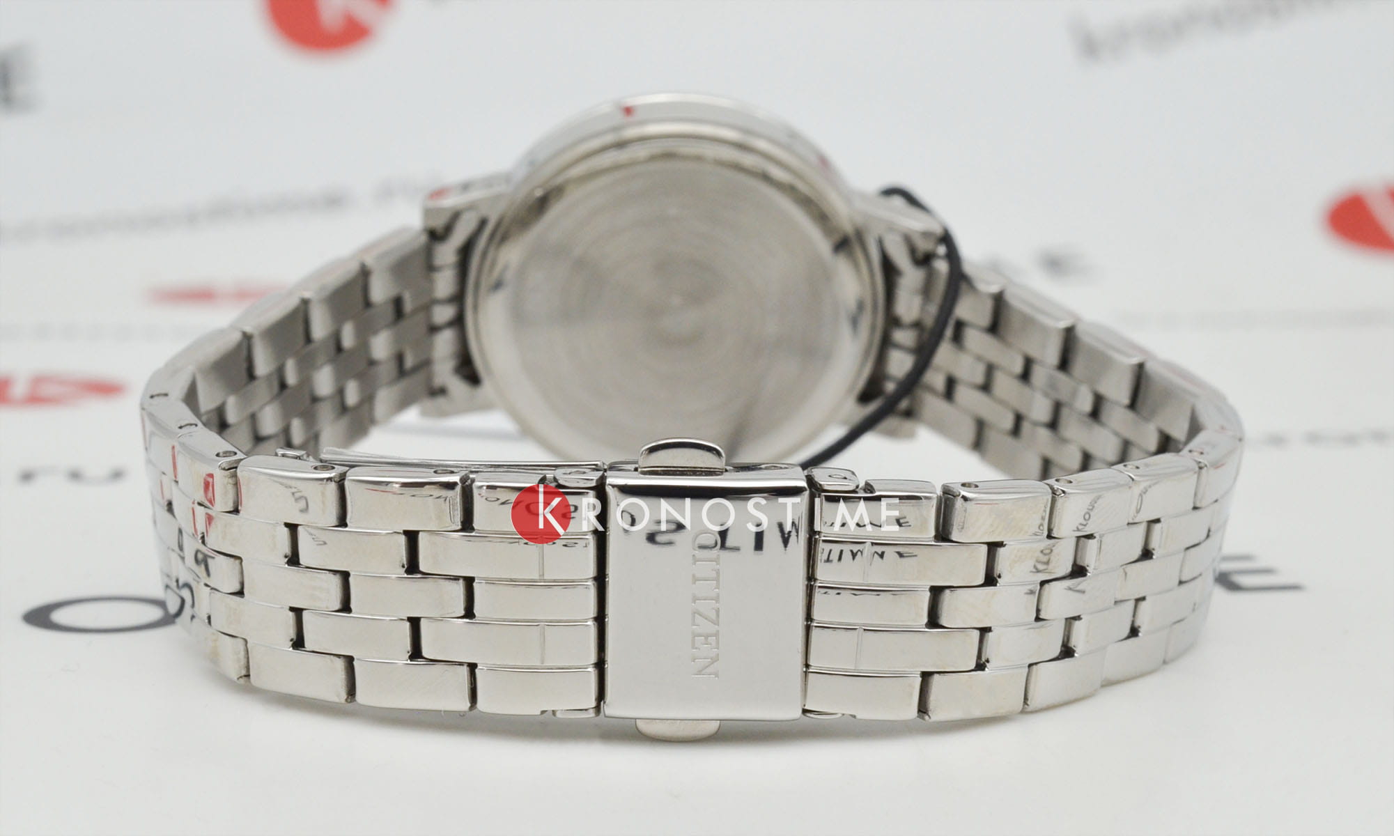 Часы Citizen EL3100-55Z представляют собой элегантную модель, выполненную в Японии, сочетающую в себе современные технологии и утончённый дизайн. Корпус и браслет изготовлены из прочной нержавеющей стали, что обеспечивает долговечность и привлекательный внешний вид. Диаметр корпуса составляет 31 мм, а толщина — всего 7 мм, что делает часы изящными и аккуратными на запястье. Особое внимание привлекает безельБезельВнешний ободок, закрепляющий стекло. В спортивных часах так называется поворотное кольцо с делениями на циферблате, выполняет роль таймера – замеряет отрезки времени на шкале. Неподвижный безель – элемент декора. Однонаправленно вращающийся безель на дайверских часах позволяет фиксировать моменты погружения и выныривания на поверхность., украшенный мерцающими кристаллами, которые придают часам особый шарм и изысканность. Надёжный кварцевый механизм гарантирует точность хода, а водозащита уровня WR 50 позволяет не снимать часы при мытье рук или во время дождя. Циферблат украшен часовыми индексами в виде точек и цифр, а также оснащён центральными стрелками часов, минут и секунд для удобного считывания времени и кристаллами. Минеральное стеклоМинеральное стеклоМинеральное стекло представляет собой искусственно выращенный минерал кварца. Такое стекло отличается особой устойчивостью к повреждениям и царапинам. Уступает по некоторым качествам сапфировому стеклу. устойчиво к появлению мелких царапин, сохраняя прозрачность и презентабельный вид. Стальной браслет с раскладной застёжкойРаскладная застёжкаТакой тип застёжки используется только на браслетах из металла. Она никогда не раскрывается полностью, происходит разделение на 2 и более частей. Раскладывающая застёжка снизит вероятность потери часов к минимуму. надежно фиксирует часы на запястье, обеспечивая комфорт при ежедневном ношении.